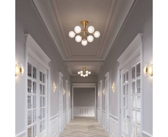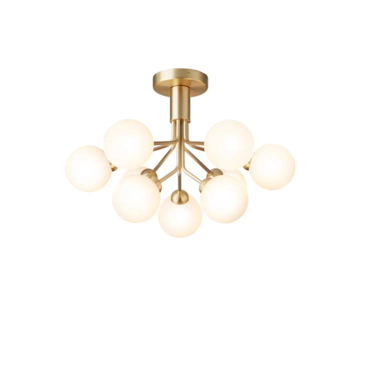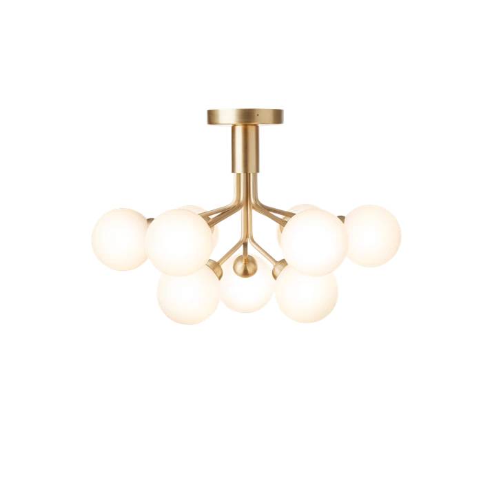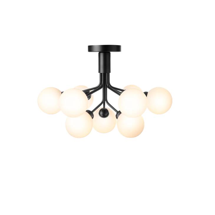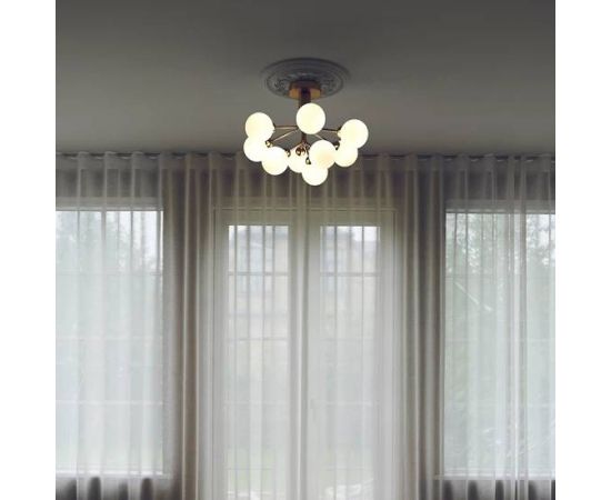 Вдохновленный цветами, Sofie Refer разработала коллекцию Apiales. Apiales 9 Ceiling - это потолочная люстра с 9 стеклянными глобусами. Из специально изготовленного навеса руки разворачиваются, как цветочные стебли, из которых с изяществом распространяется свет. Потолок Apiales 9 имеет небольшую высоту всего 40 см. Это придает люстре большую гибкость в ее применении и дает возможность повесить люстру в помещениях с более низкими потолками или в промежуточных помещениях.