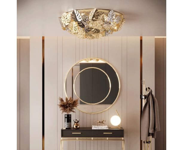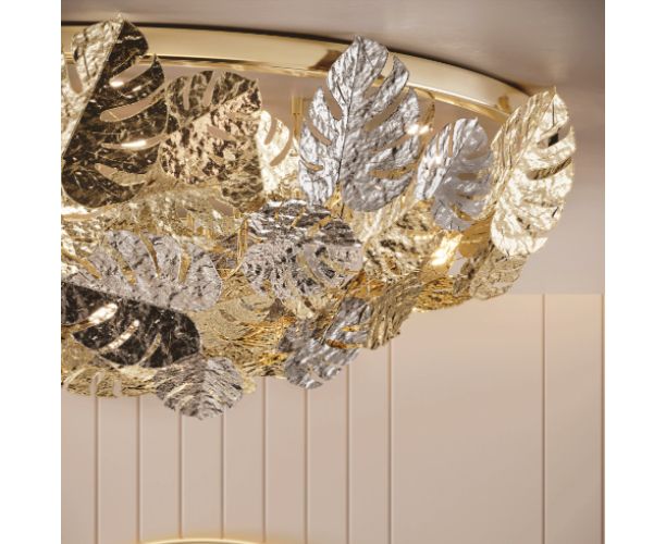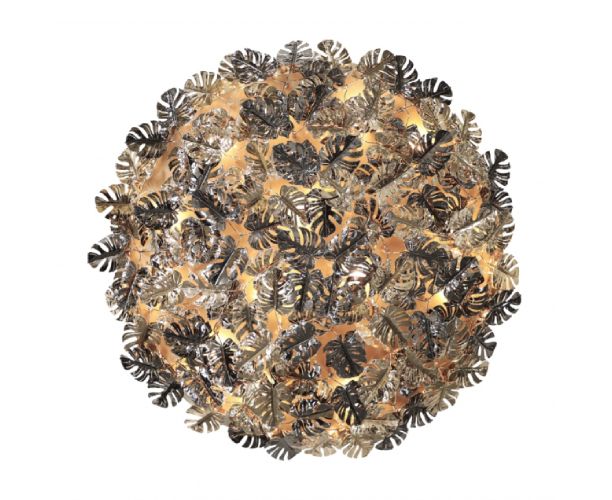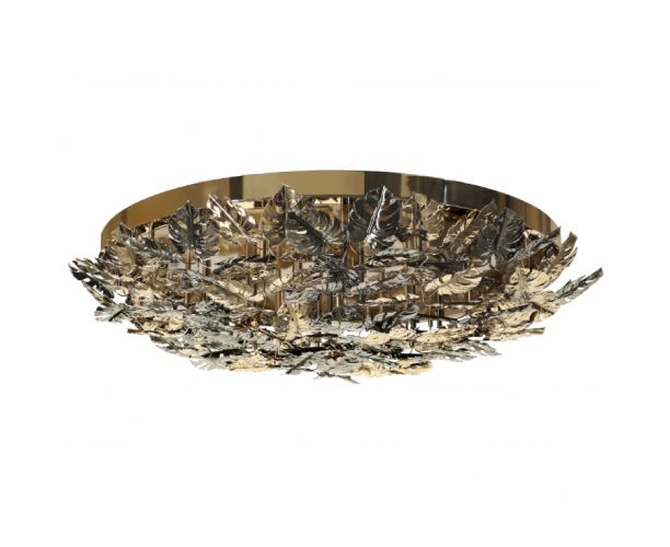 Плафон Rainforest не имеет себе равных по утонченности и изяществу, которые он олицетворяет. Позолоченная латунь в сочетании с комбинацией листьев, нанесенных вручную, придает изделию нежную харизму, напоминающую природу в полном расцвете сил. Широколиственный шедевр современного светового дизайна, который перенесет вас в отдаленные пространства и под открытое небо. Потолочный светильник с мечтательным освещением создает исключительную атмосферу в стильных интерьерах.