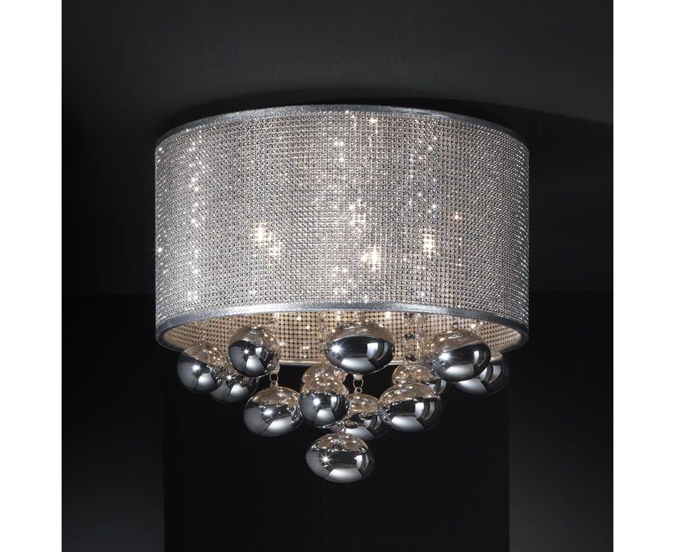 Потолочный светильник из полированной стали с отделкой "хром", плафон из перфорированного винила с покрытием "хром", с бусинами из гранёного стекла внутри и с шарами из стекла с покрытием "хром"