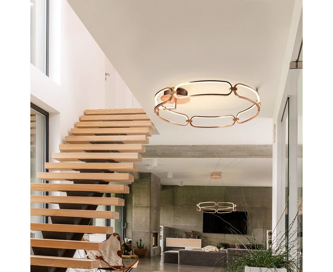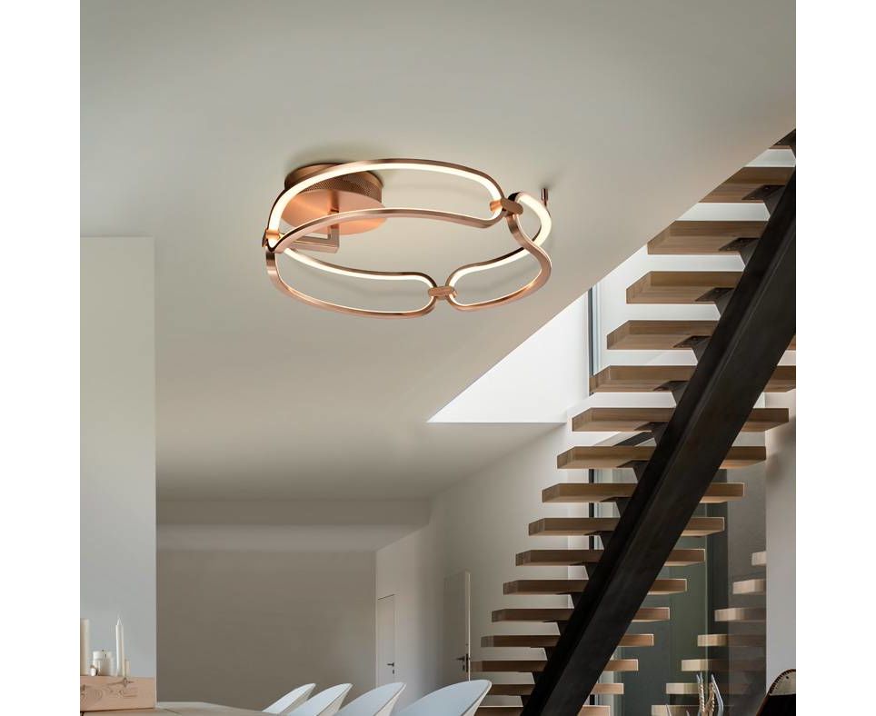 Потолочный светильник LED маленького размера, из алюминия с матовым полированным золотистым покрытием. Силиконовые рассеиватели опалового цвета, 37W LED, 3330 Lm, 3000 K.