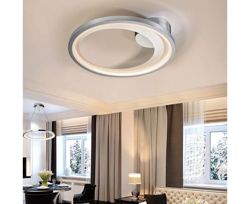 Потолочный светильник LED из металла с покрытием "хром" и матовым белым покрытием. Акриловый рассеиватель опaлового цвета.
