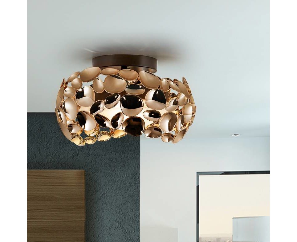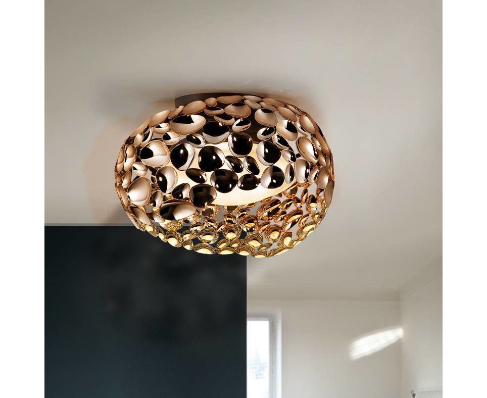Потолочный светильник с 3 лампами, из хромированного металла, акриловый рассеиватель внутри.