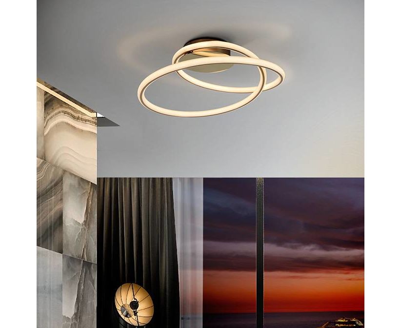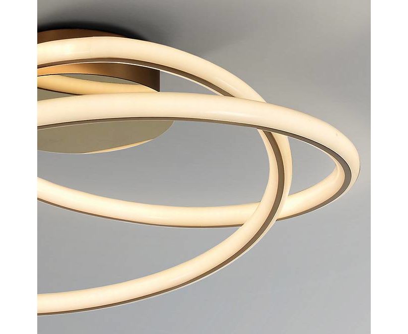 Потолочный светильник из металла и алюминия, покрытие "блестящее золото" и "матовое золото". Рассеиватель трубчатый из силикона опалового цвета.