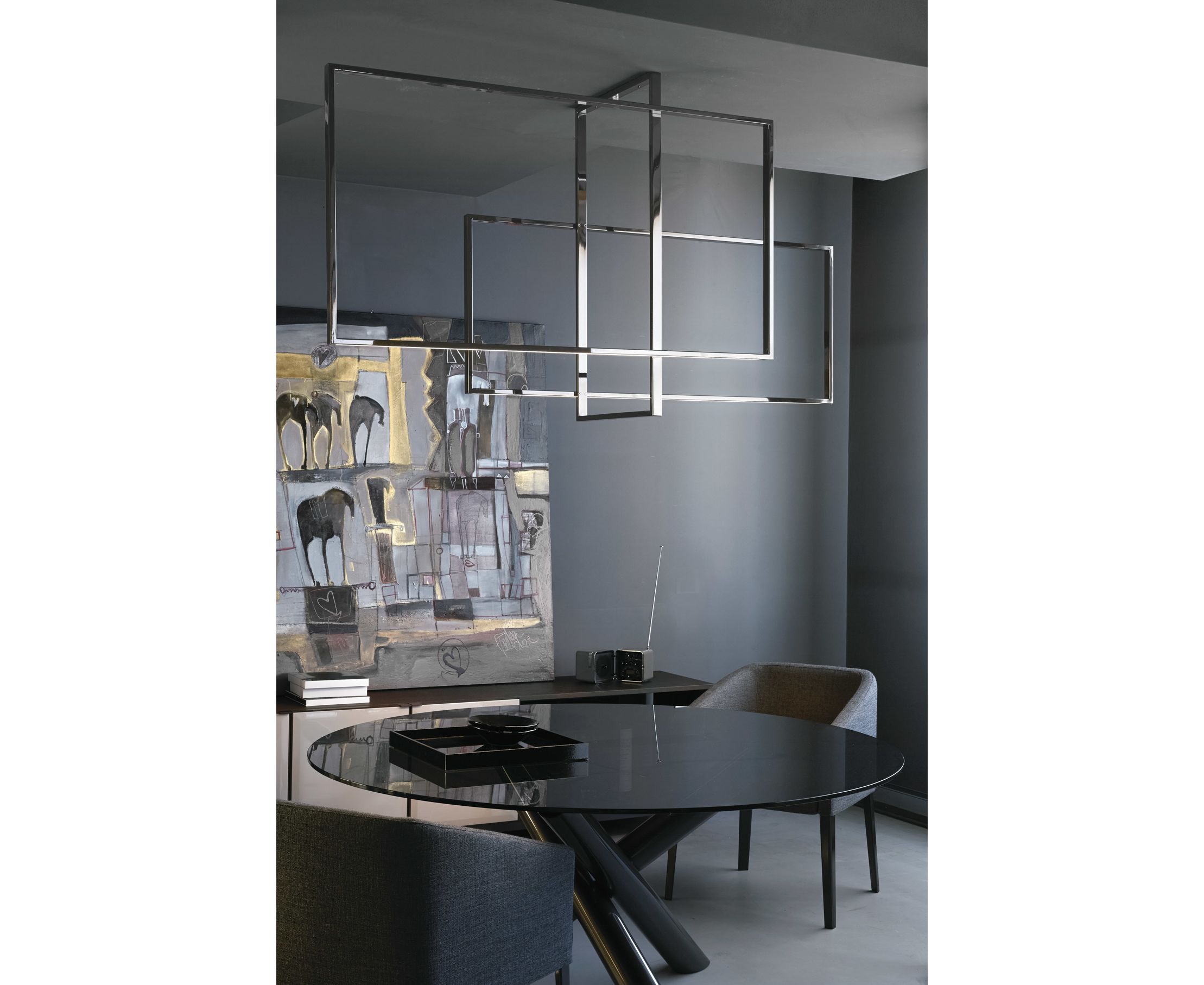 Потолочный светильник, чей баланс формы позволяет ей переосмыслить любое пространство. Натуральная полированная латунь, полированная структура из черного никеля или полированного золота с диффузорами из выдувного муранского стекла, выдуваемыми вручную, белого цвета.