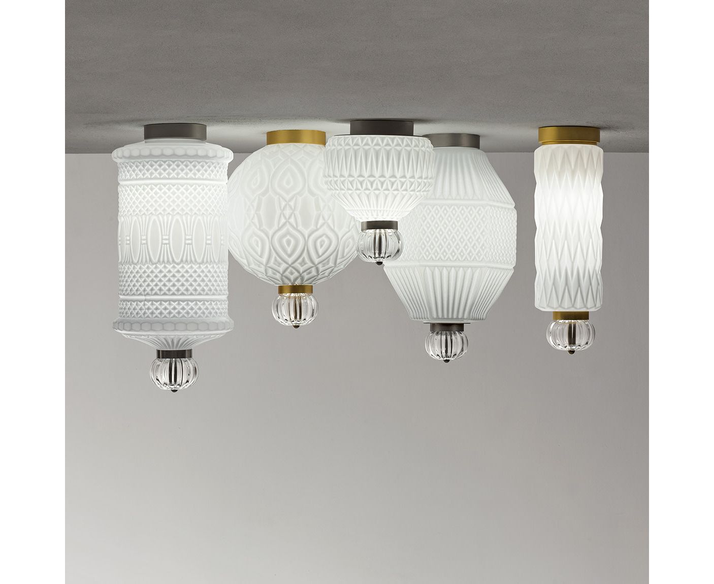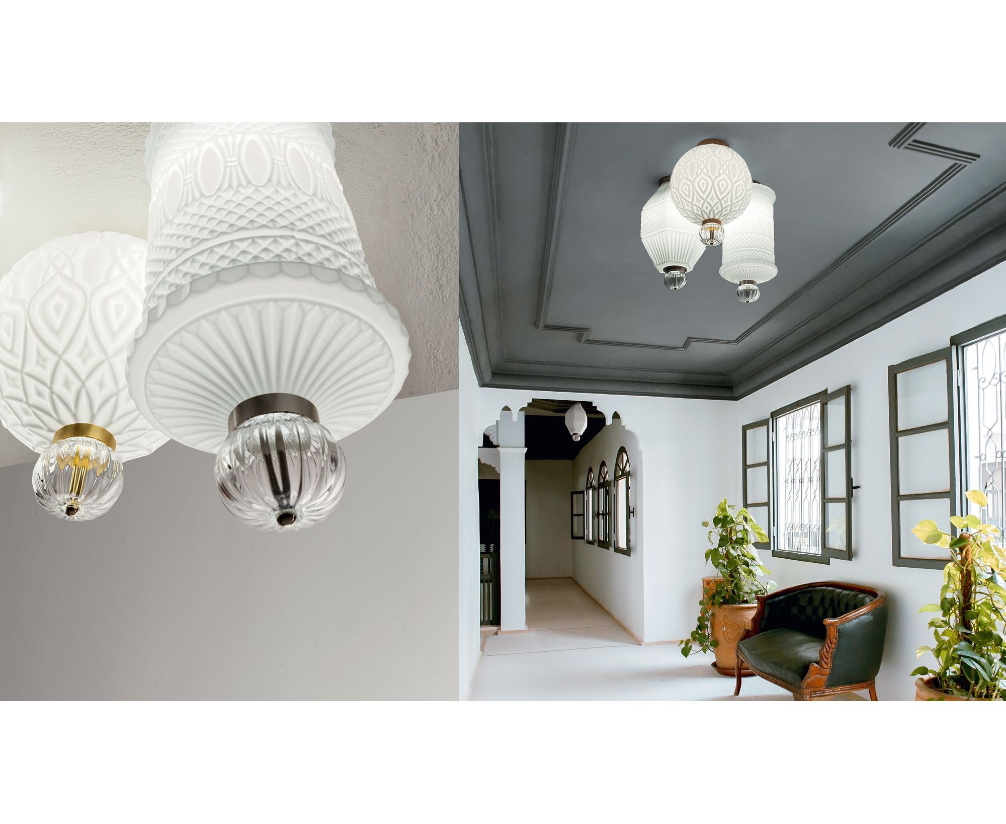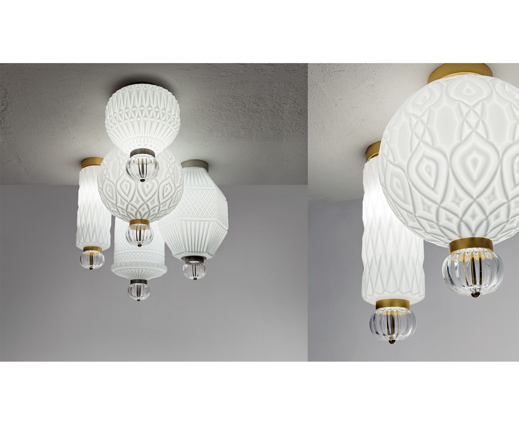 Коллекция OMG, аббревиатура Oh My Glass!, - дань красоте литого стекла. Разнообразие форм, размеров и отделок для «симфонии» подвесок и потолочных светильников. Цветовые вариации в стекле, отделка в раме и в формах делают возможными различные комбинации. Стекло доступно в прозрачном или белом цвете. Структура: матовый никель или золото. Потолочный навес: матовый никель или золото.