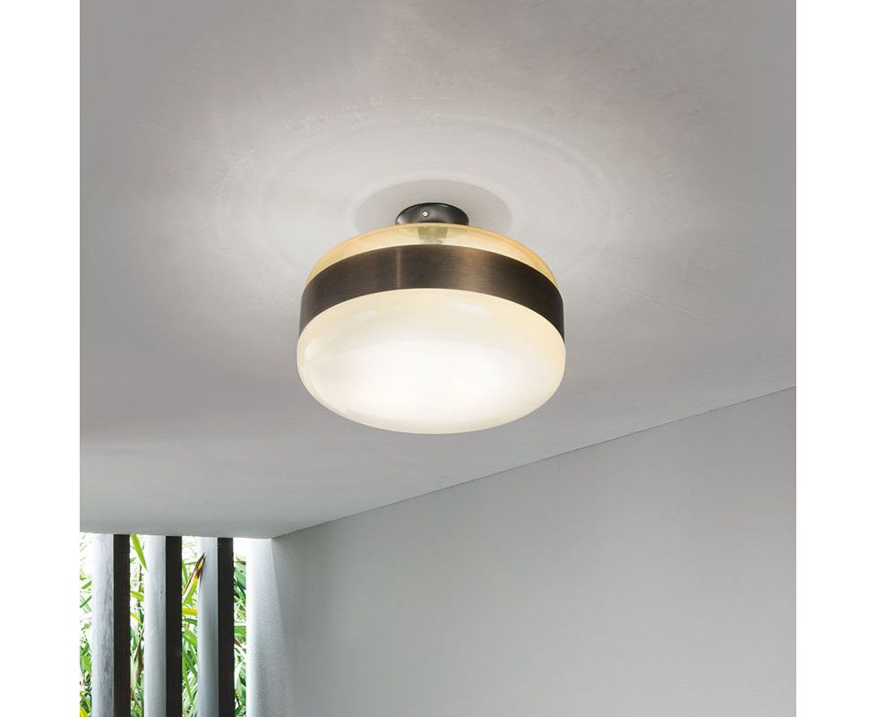 Коллекция подвесных светильников из выдувного стекла представлена в трех эксклюзивных цветах в сочетании с различными вариантами отделки металлическим кольцом. Стекло выдувается из одного целого, но особый процесс ручной работы делает цвет прозрачным в верхней части и рассеивателем в нижней части.
