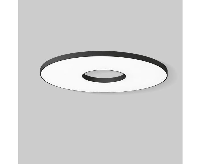 Кольцевидный плафон из катаного алюминиевого профиля, с бесшовной сваркой, плоская конструкция (плафон 45 мм); поверхность белая или черная с порошк. покрытием; вводимый сбоку свет через корпус LGP (Light Guiding Prism) и высокоэффективный рефлектор отклоняется вниз; сатинированный рассеиватель из ПММА для абс. однородной подсветки; опционально с прямой/непрямой характ. излучения для дополнительного акцентирования потолочной зоны и большего зрительного комфорта; энергоэфф. светодиоды с высокой степенью цветопередачи; биннинг начальный ≤ 3 МакАдаму; поставляются с цветовой темпер. 3000 K и 4000 K; CRI ≥ 80; мин. 80% светового потока спустя 50000 ч эксплуатации; светильник с 2 кабельн. отв. и штепсельным зажимом для проходной кабельной разводки; степ. защ. IP 20; Защ. I; опционально регулирование яркости по сигналу DALI с функцией CLO; опционально без регулирования яркости.