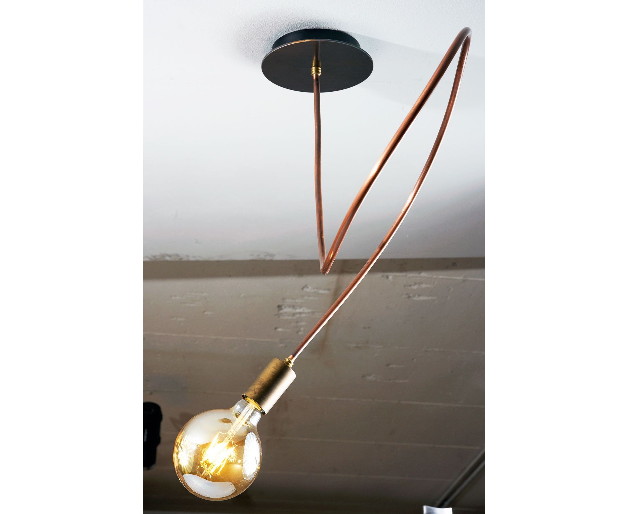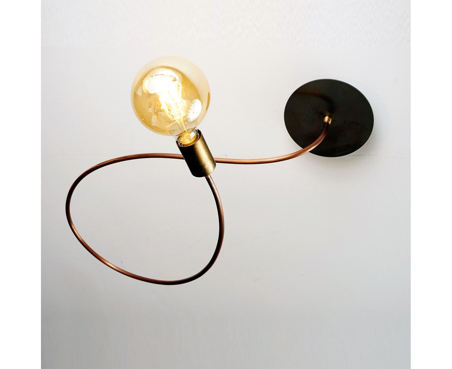 Тактильная и минимальная линия, которая описывает пространство. Медный стержень, который может быть согнут по желанию, чтобы создать предпочтительный силуэт. Винтажная атмосфера, предлагаемая лампой, обеспечивает впечатляющий декоративный эффект.