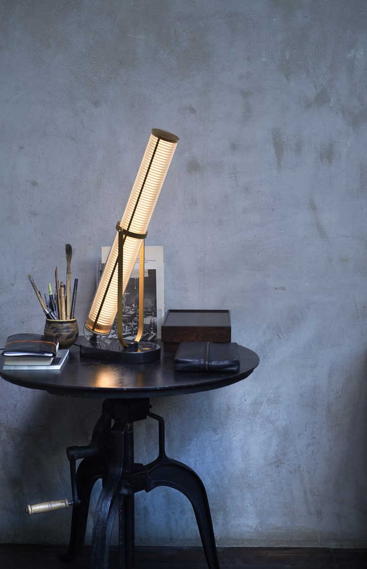 «Играя с контрастами между материальностью и нематериальностью, присутствием, отсутствием и проявлением света, светильник La Lampe Frechin предлагает чувствительный опыт оптики между наукой и магией. Сопоставляя неподвластные времени материалы (мрамор, стекло, алюминий) и поэтический подход к технологиям, он освещает столько же, сколько и пространство».