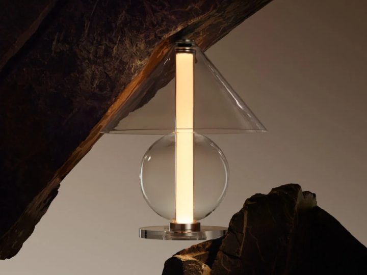 Это отправная точка, с которой он размышляет и экспериментирует, чтобы предложить новый дизайн стекла с более обтекаемыми формами. Fragile - хрупкая лампа представляет собой сочетание геометрических форм. Конус и сфера расположены так, чтобы удерживать цилиндр, который излучает рассеянный свет снизу.