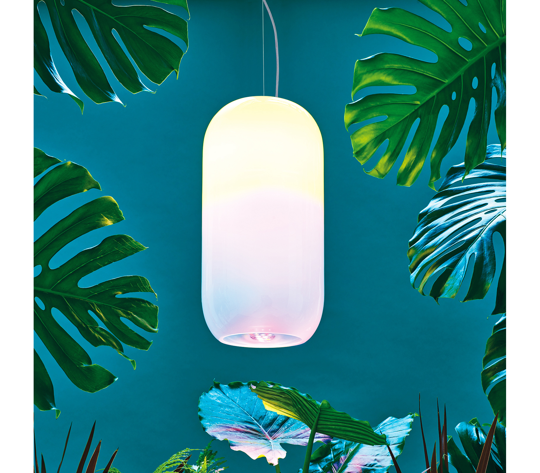 Gople Lamp примиряет человеческие пространства и природу через свет. Выдувное стекло, изготовленное по старинному традиционному венецианскому методу, включает запатентованную технологию RWB, которая помогает растениям расти, создает эффект сцены или атмосферы и обеспечивает функциональное белое освещение. Система RWB, запатентованная в 2011 году, представляет собой новую парадигму, отличающуюся от подхода к цветному свету - уже не RGB (красный-зеленый-синий) для психофизического благополучия человека, а скорее RWB (красно-бело-голубой) для света, который уважает человека и окружающую среду. Gople Lamp RWB калибрует свой свет в соответствии со значениями PPFD, требуемыми в двух фазах, где важна соответствующая подача света: фаза роста сопровождается синими излучениями с длиной волны 425-450 нм, тогда как фаза цветения поддерживается красным излучением между 575 и 625 нм. Gople сочетает прямое и контролируемое излучение RWB с белым косвенным рассеянным светом, которое можно контролировать отдельно.