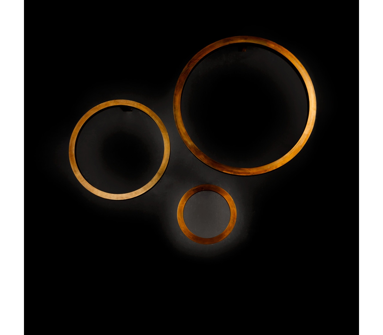 настенно-потолочный светильник с энергосберегающей лампой с теплым светом (показатель энергоэффективности A), выполненный с кольцами различных размеров и типов освещения; трансформаторы встроены в распределительную коробку. H-Silver®: чистое 99,9% серебро на латуни, полированное вручную с использованием традиционных методов, что является результатом эксклюзивного метода HENGE.