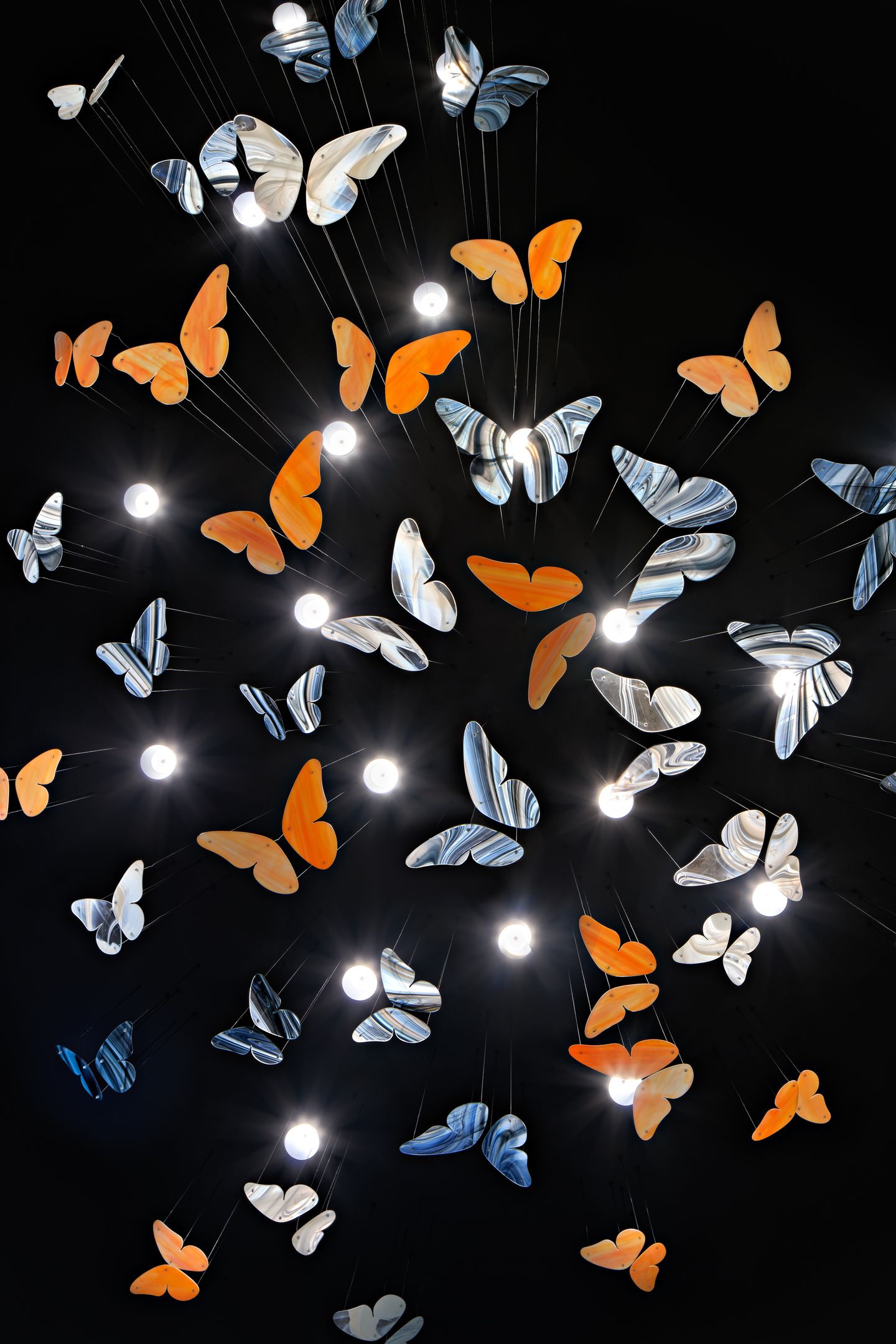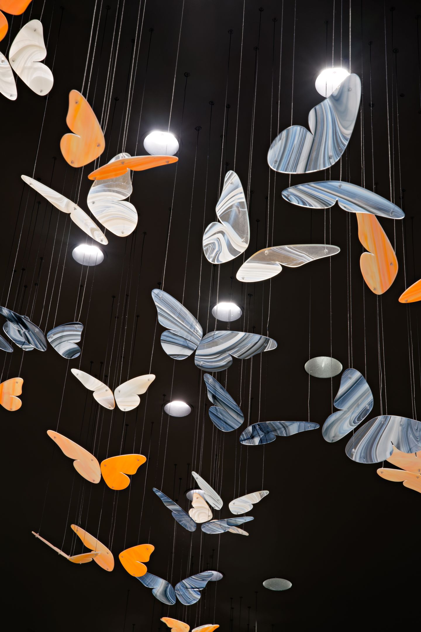 «В этой инсталляции запечатлен очаровательный мерцающий полет бабочек и красота их крыльев. Каждая бабочка создана из двух отдельных крыльев для достижения абстрактной формы», - рассказала их дизайнер Микаэла.