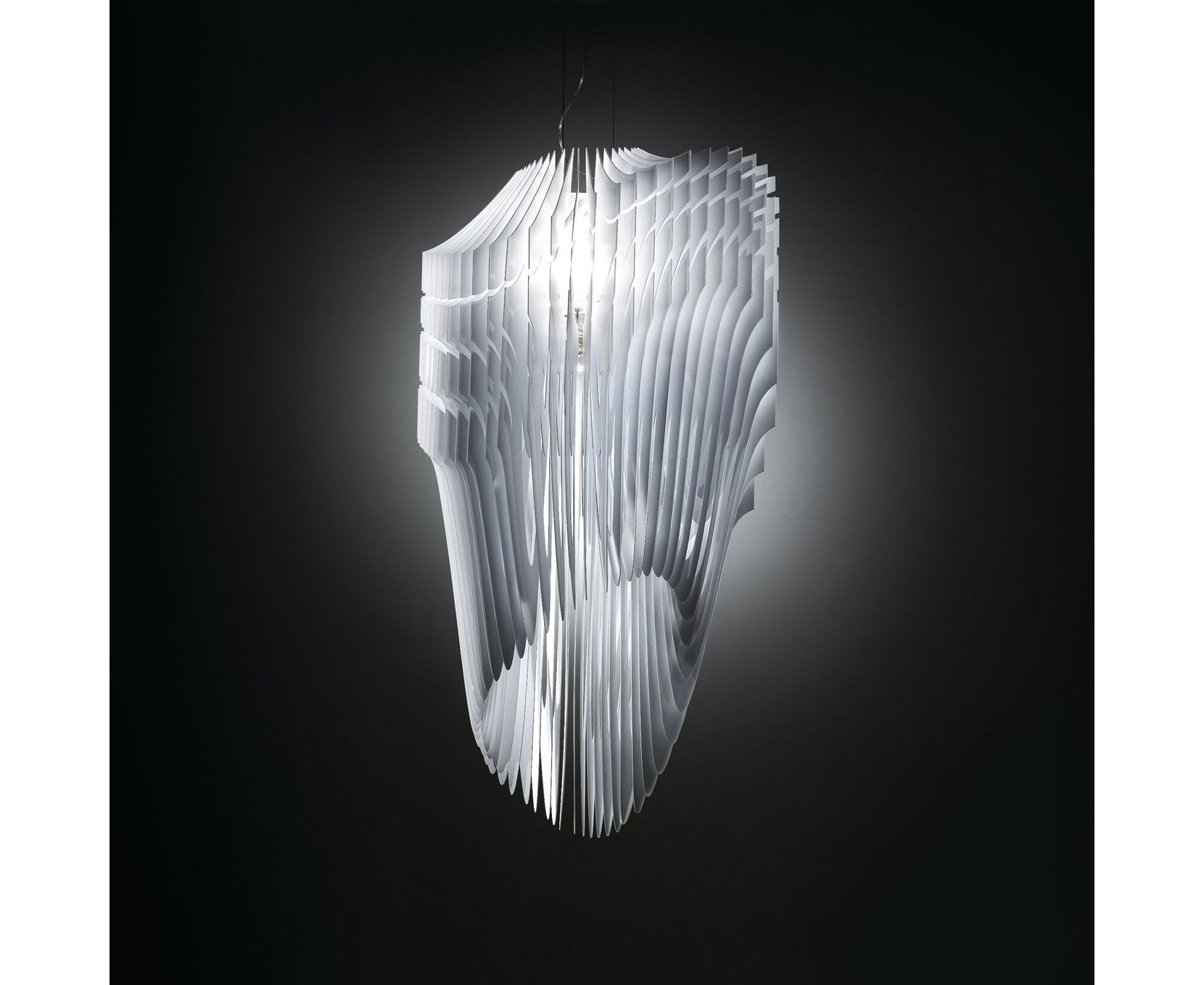 Свет часть, которая легко взаимодействует с драматическим движением, оставаясь невесомой с помощью технически передовых материалов. 50 слоев Opalflex® - Lentiflex®, этот подвесной светильник имеет сложную, но гармоничную форму и современный дизайн. Полупрозрачные черные или белые слои, преобразуют лампу в увлекательную скульптуру.