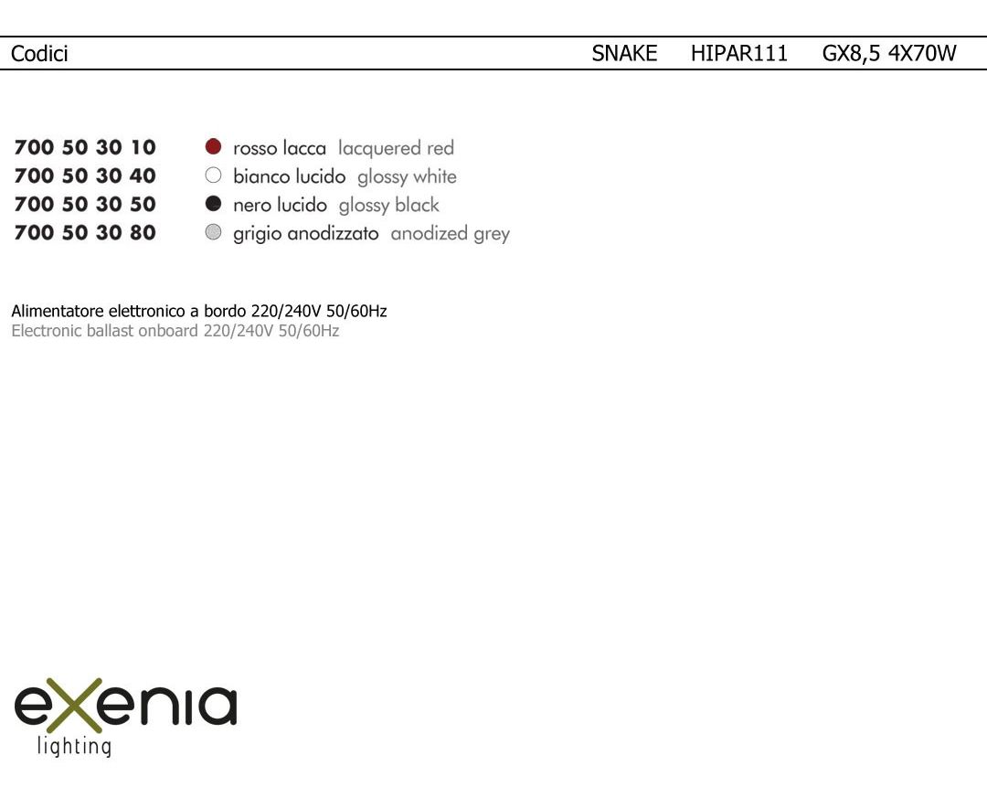 QR111 G53 4x100W 700508010 LACQERED RED 700508040 GLOSSY WHITE 700508050 GLOSSY BLACK 700508080 ANODIZED GREY |