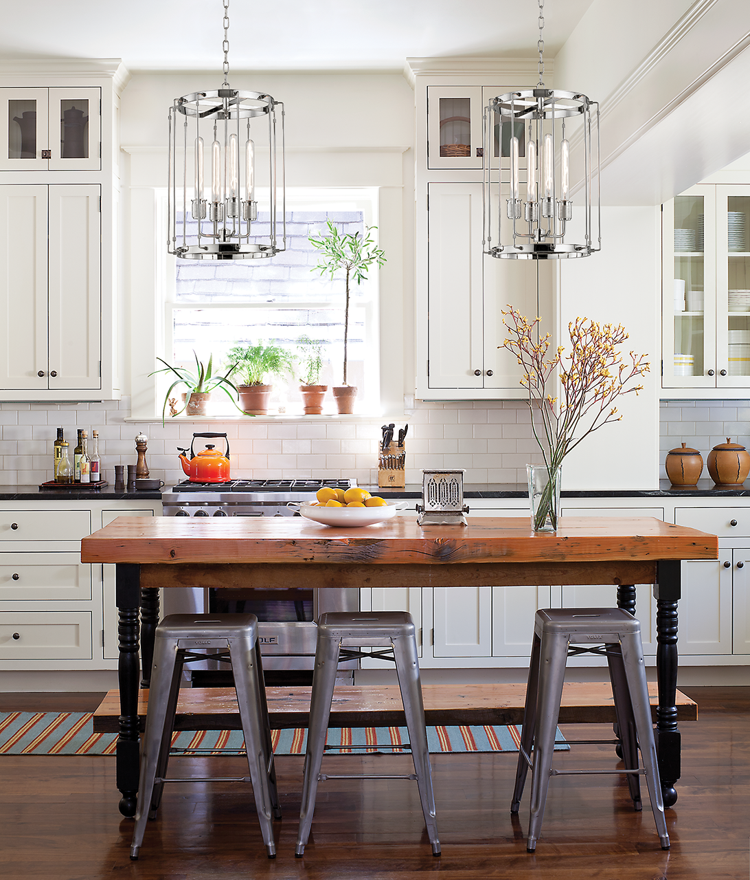 Этот стиль, основанный на чувствах к домашнему интерьеру ранних американских поселенцев, отличается естественной, состаренной и / или потрепанной отделкой в классических формах. Рассмотрите элементы освещения кухни и гостиной с открытыми светильниками и декоративным металлом. В результате получается не только теплый и уютный образ, но и очаровательный, собранный с течением времени вид.