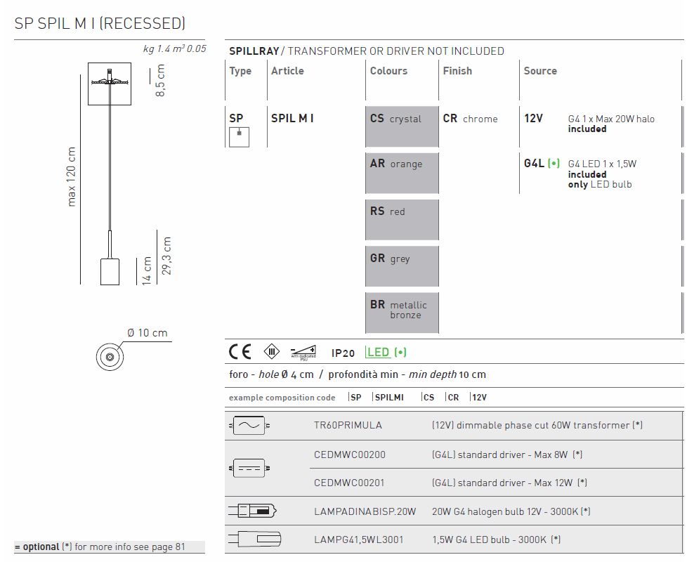 доступны версии в цвете рассеивателя: AR - оранжевый рассеиватель (SPSPILGIARCR12
