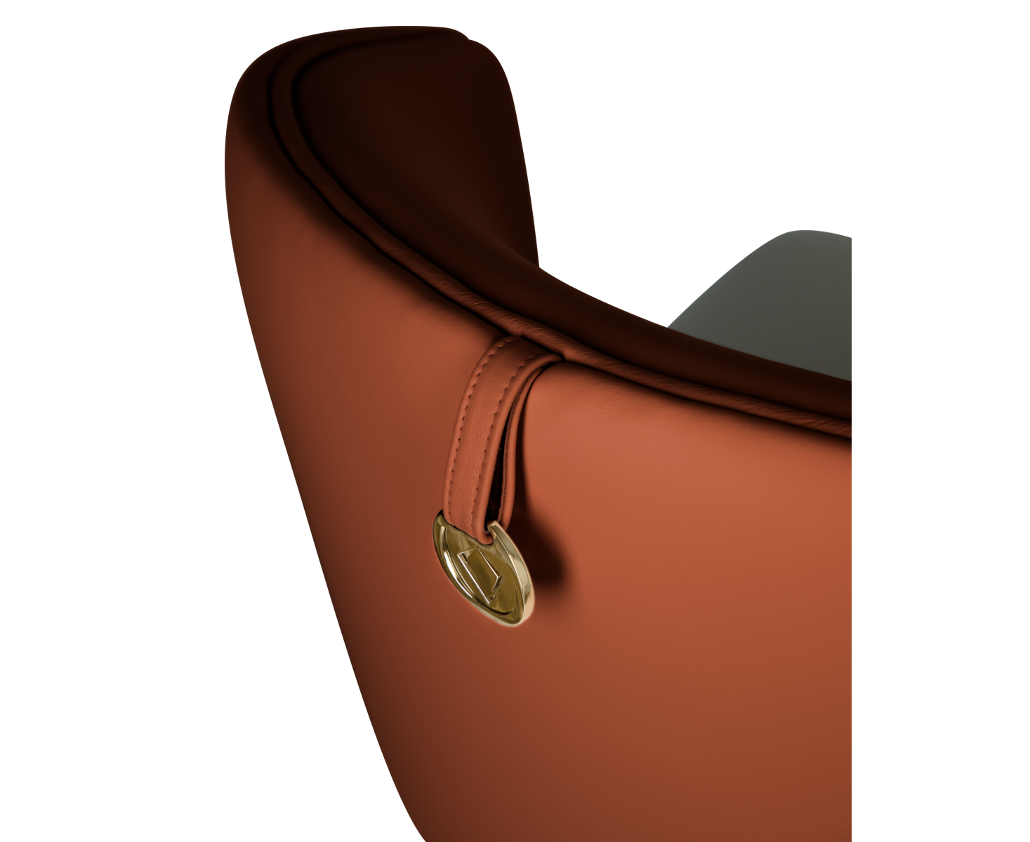 Роскошный, неподвластный времени внешний вид этого барного кресла ручной работы, обеспечиваемый изысканным сочетанием таких материалов, как латунь и кожа, обрамляющих завораживающую коричневую обивку, великолепный дизайн Sedere направлен на то, чтобы быть больше, чем кажется на первый взгляд, с утонченным высоким дизайном. Спинка кресла украшает великолепно вышитый световой логотип Castro.