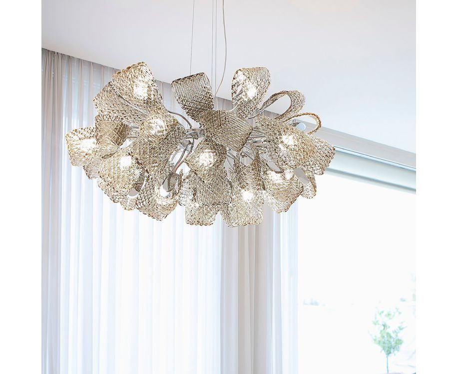 в форме цветка:для низких потолков:для высоких потолков:на тросах:регулируемый подвес