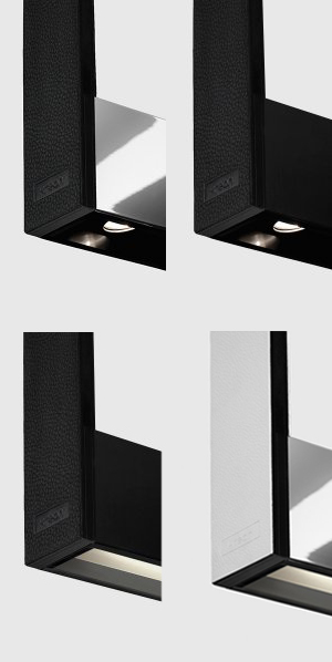 Концепция Cadre основана на двух одинаковых алюминиевых профилях, соединенных алюминиевой регулируемой системой подвески, покрытой белой или черной кожей. Видимые алюминиевые части изделия отделаны натуральным или черным анодированным алюминием или хромированы. Cadre - это сбалансированный продукт, отражающий тонкость источника света T16, и оснащенный высокоэффективными жалюзи толщиной 15 мм или матовым плексигласовым стеклом.