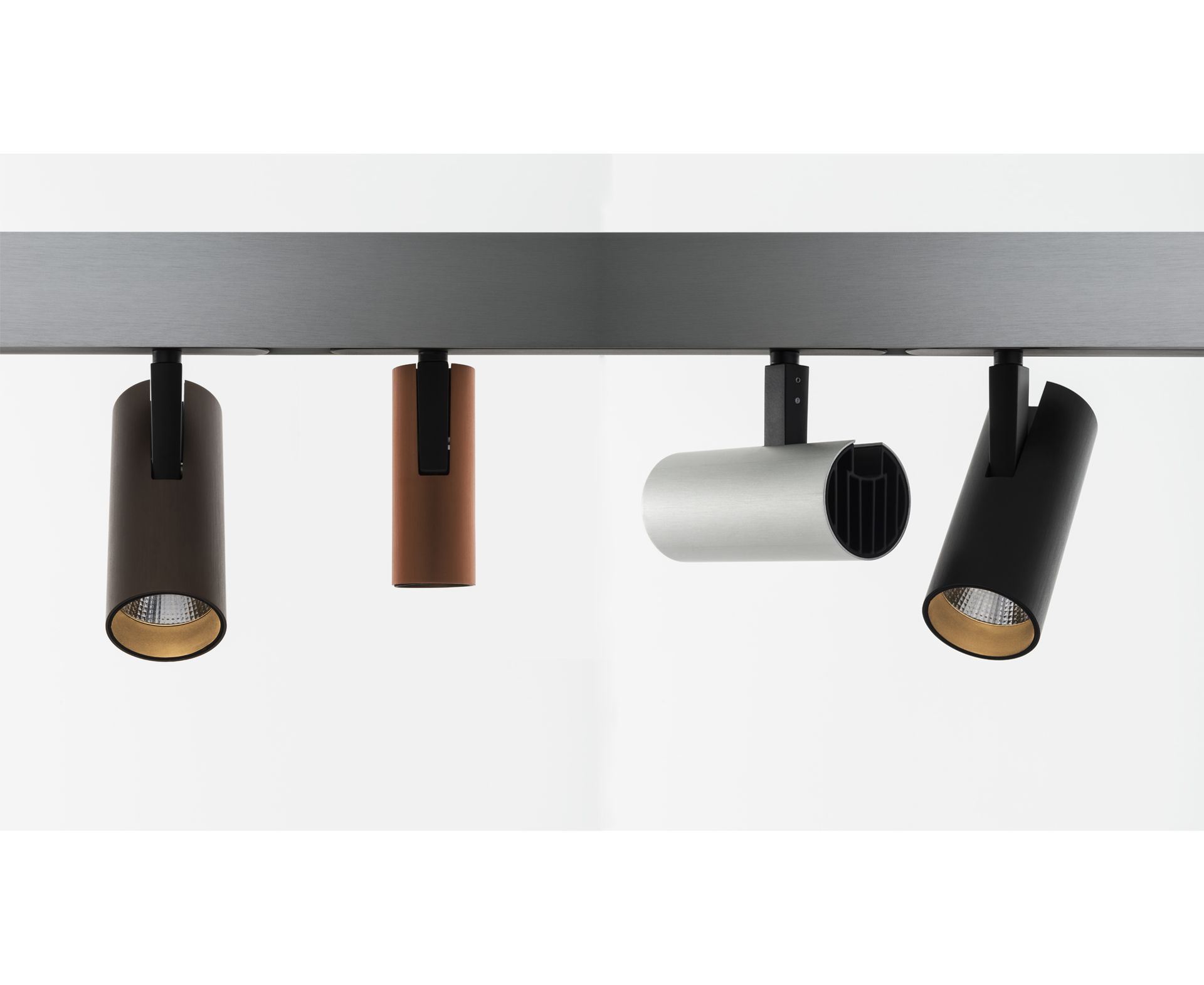 Два размера с тремя разными углами пучка (точечные, заполняющие, широкие), полученные с помощью рефракционных или гибридных оптических блоков. В корпус прожектора встроен соединительный рычаг, который удерживает барицентр на одной линии с гусеницей и предотвращает дисбаланс в возможных версиях подвески на треке. Соединение позволяет вращение на 360° и наклон на 90° для максимальной свободы регулировки освещения.