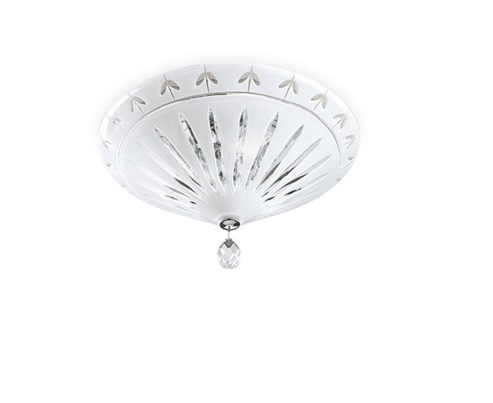 Потолочный светильник с простым, но очень эффектным дизайном подойдет для любого помещения и интерьера. Светильник воплощает привычные формы, но благодаря молочно-белому цвету и декору на рассеивателе, получается стильный светильник для современного классического интерьера.