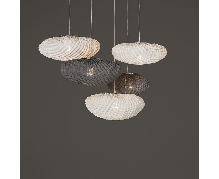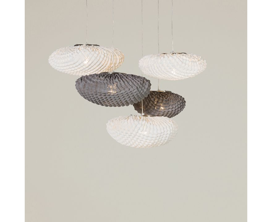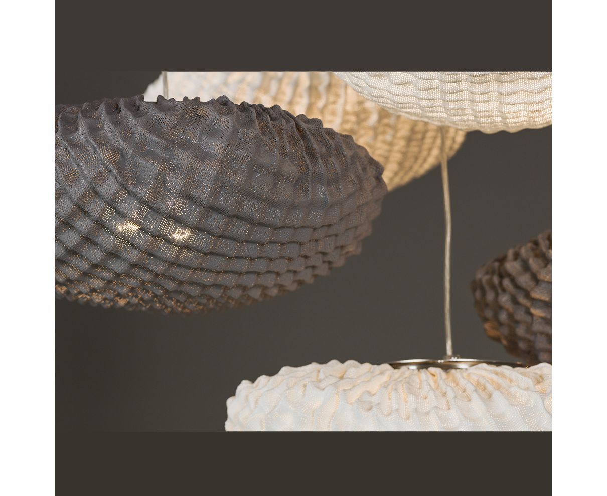 Круглая форма с текстурой плетеных кругов, которые повторяют друг друга, чтобы создать кожу, оболочку. Обратим взор на симметрию от воссозданной природы. Подвесные светильники имеют сильные эмоциональные компоненты, напоминающие материнские объятия.