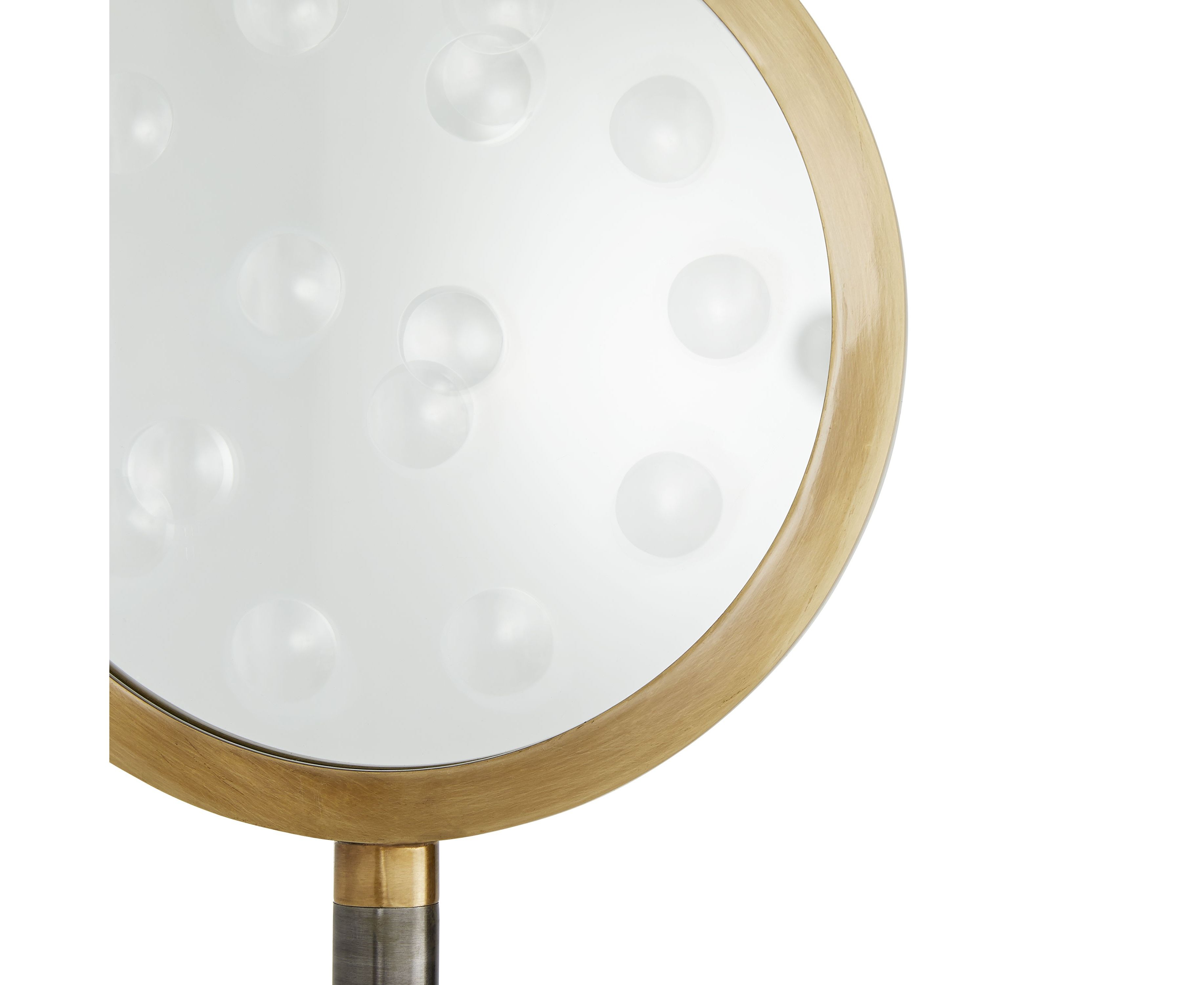 Ellsworth сквозь зеркало. Эта лампа заслуживает восхищения снова и снова, эта лампа оснащена увеличительным стеклом, которое углубляется в детали его окружения. Его прочная бронзовая железная конструкция отделана антикварной латунью и украшена сферическими латунными деталями, которые окружают верхнюю часть гладкой, прямой рамки. Торшер покрыт не совсем белым шелковым абажуром в форме барабана с не совсем белой хлопковой подкладкой. Отделка может отличаться.