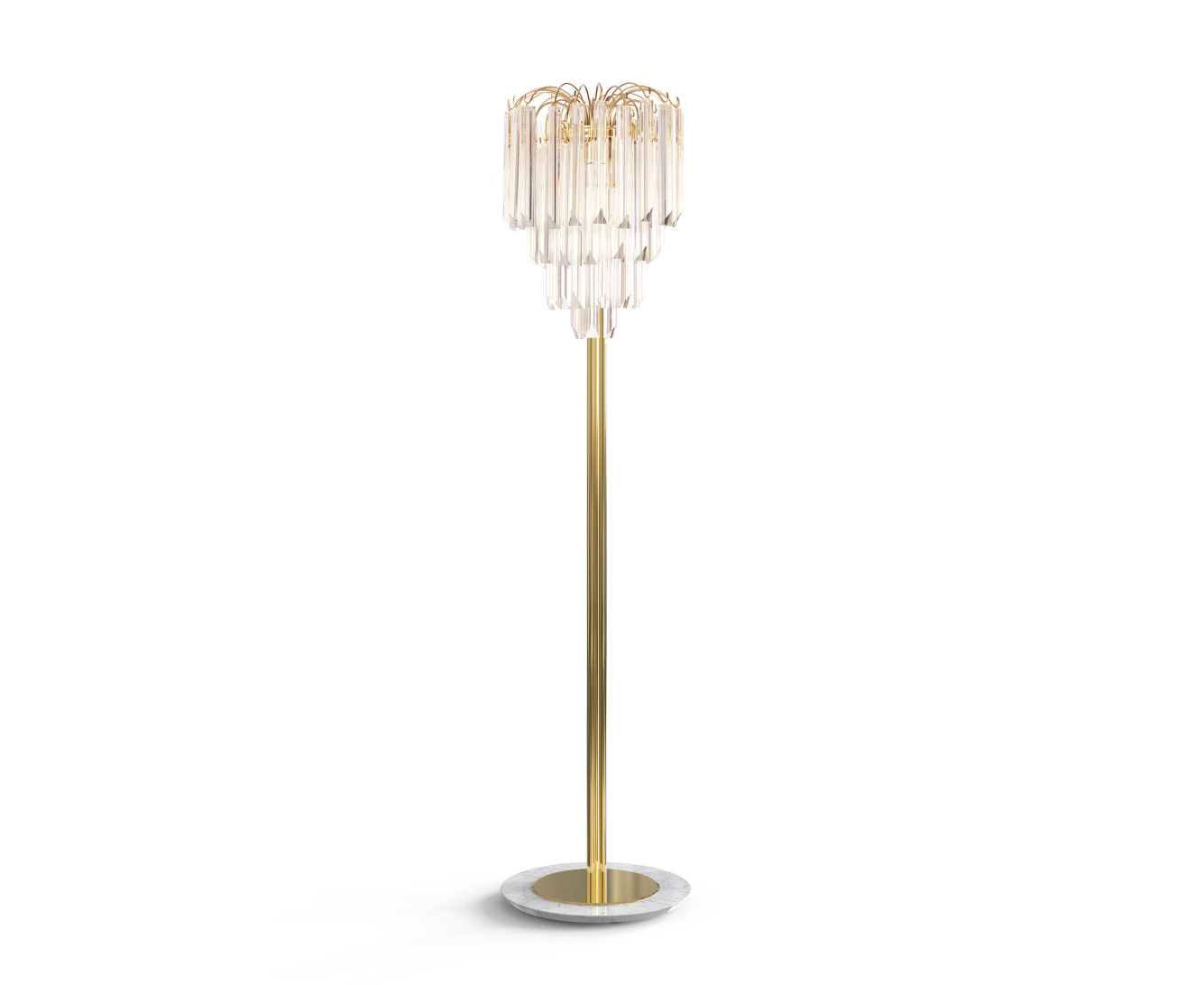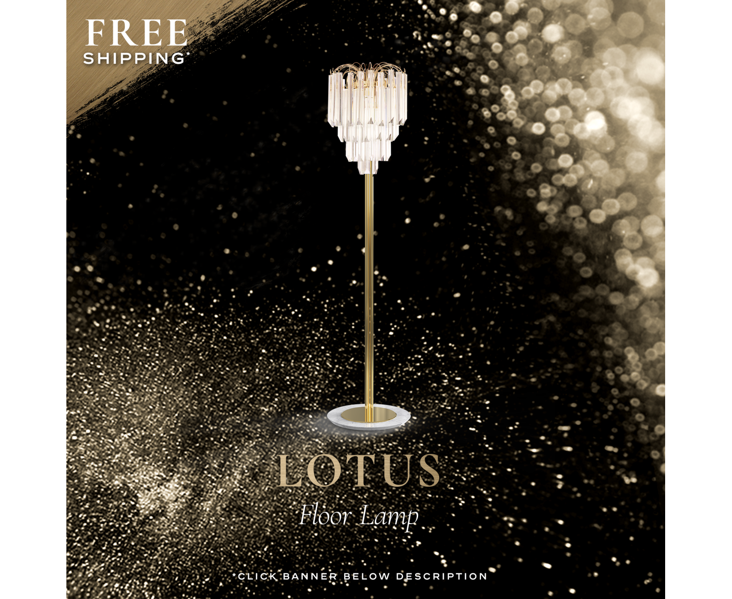 Торшер Lotus призван представить эту простоту и великолепие, так как его дизайн и форма почти идентичны форме настоящего цветка, включая его роскошное ощущение. Использование благородных материалов и ценных традиционных технологий производства делает эту коллекцию уникальной, поскольку 24-каратные золотые дужки с тонким стеклом увеличивают визуальную сложность. Очки напоминают нам спокойные падающие лепестки цветка, отражающие его простоту, а также оттенки элегантности и красоты.