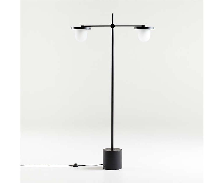 Регулируемый торшер, в игровой форме демонстрирующий баланс и геометрию, обеспечивает рассеянный свет именно там, где он вам нужен. Прочный цилиндр поддерживает центральный стержень, на котором уравновешивается тонкая рука, украшенная черными кругами и белыми матовыми стеклянными плафонами на каждом конце. Корпус, покрытый порошковой краской в современном матовом черном цвете, подчеркивает изящную форму лампы.