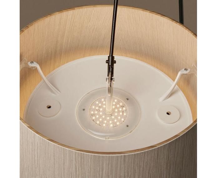 Известный исследователь материалов Марк Сэдлер (Marc Sadler) достигает такой же дуги, как при протягивании удочки через стержень из синтетического волокна. Закрепленный четкой геометрией металлической основы, волоконный стержень обеспечивает гибкость, но сохраняет свое положение с течением времени. В приподнятом положении абажур из скального дуба предлагает большую площадь поверхности, чтобы любоваться его органическими полосами и ярким оттенком.