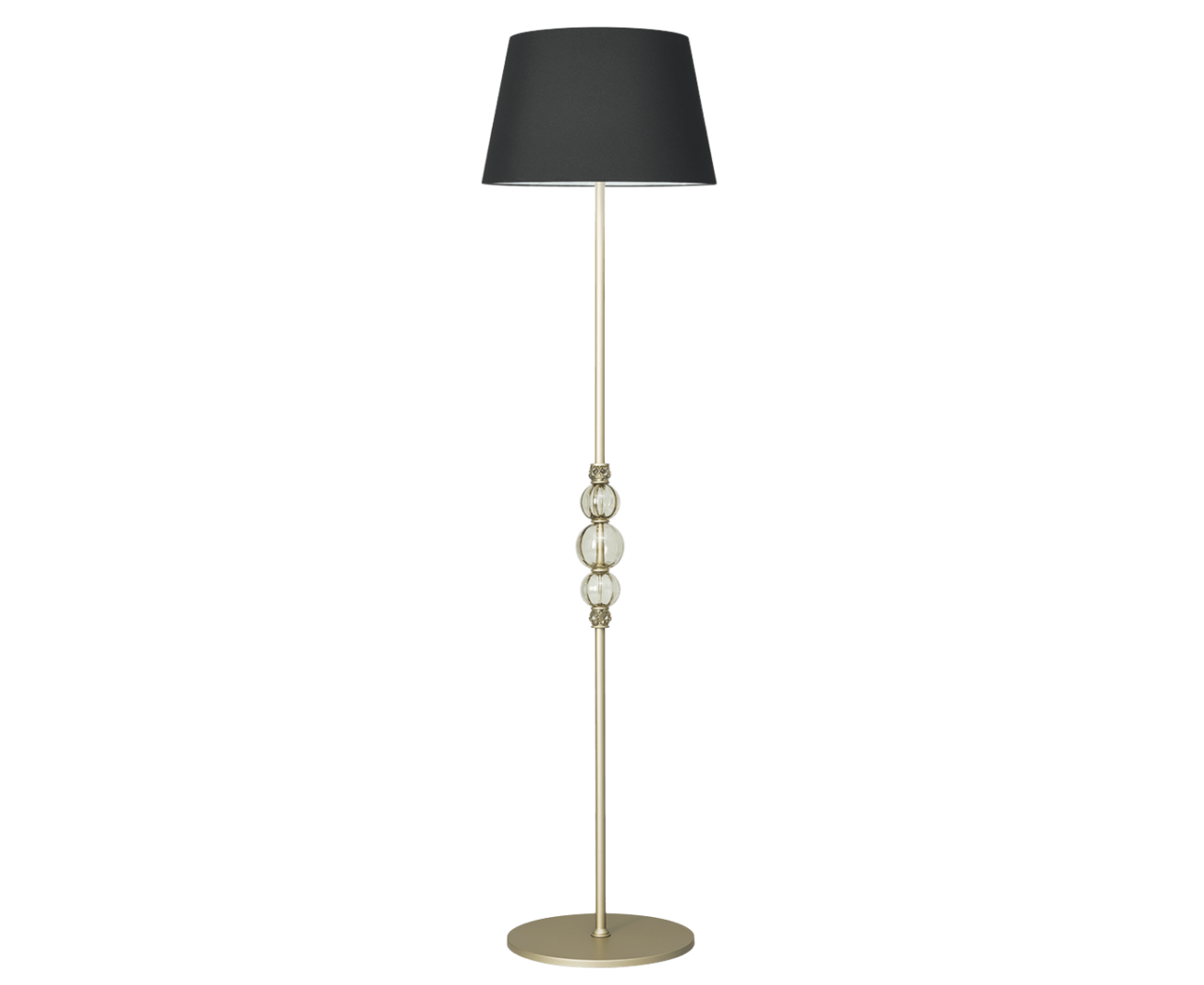Торшер из металла с отделкой из сатинированного золота, деталями из хрусталя цвета тик и черной тканью. Доступен в разных цветах. Современная коллекция Incanto.