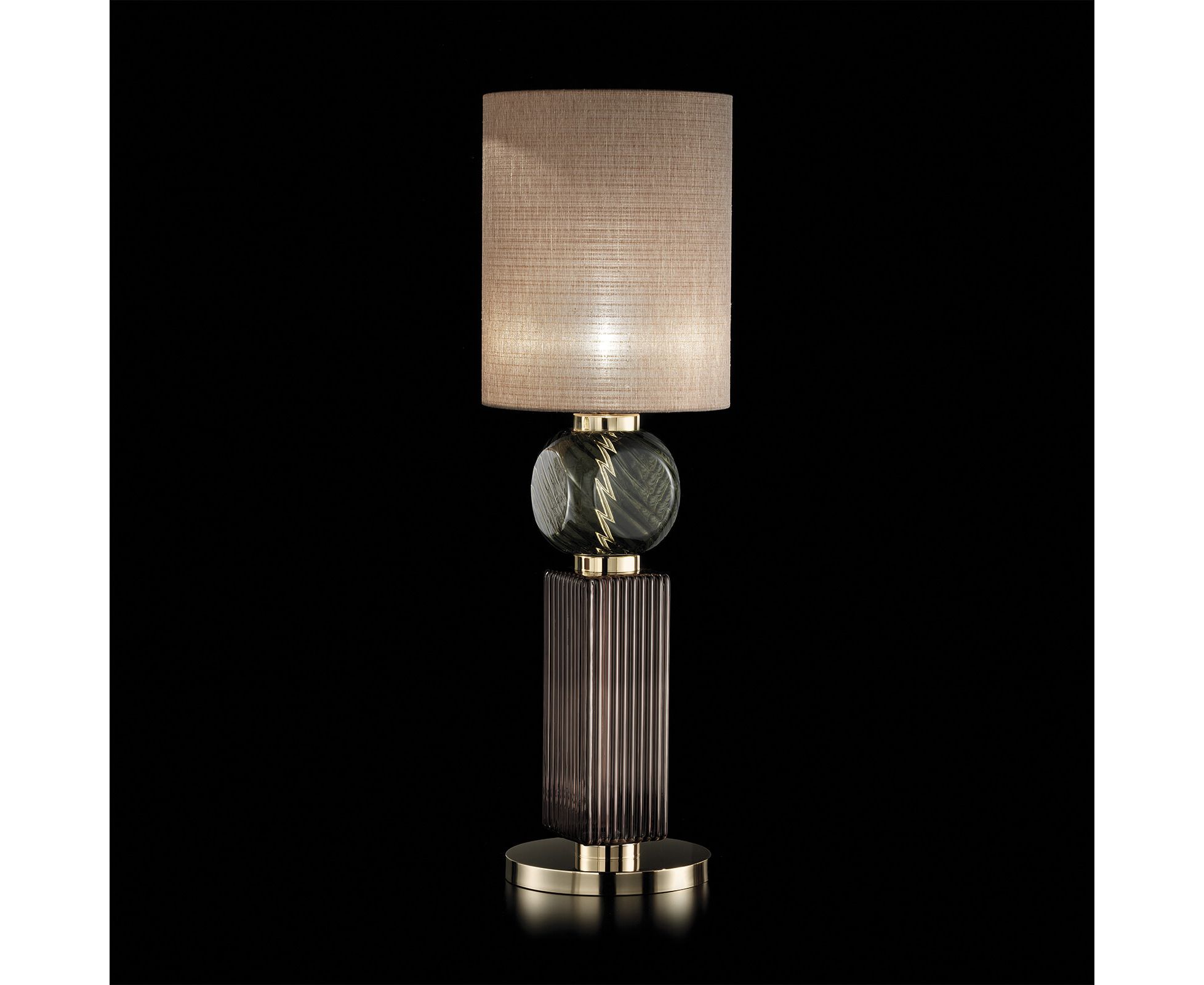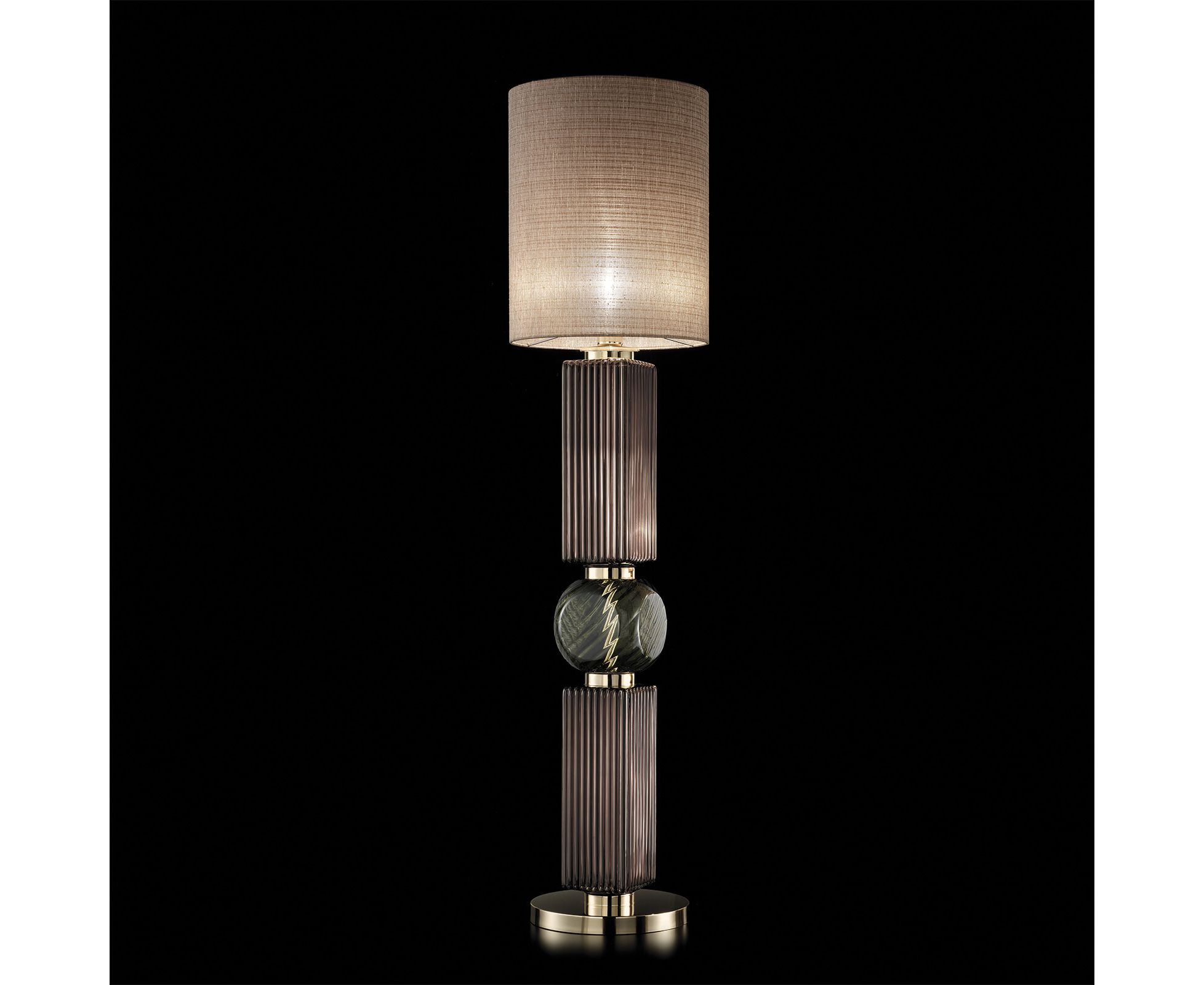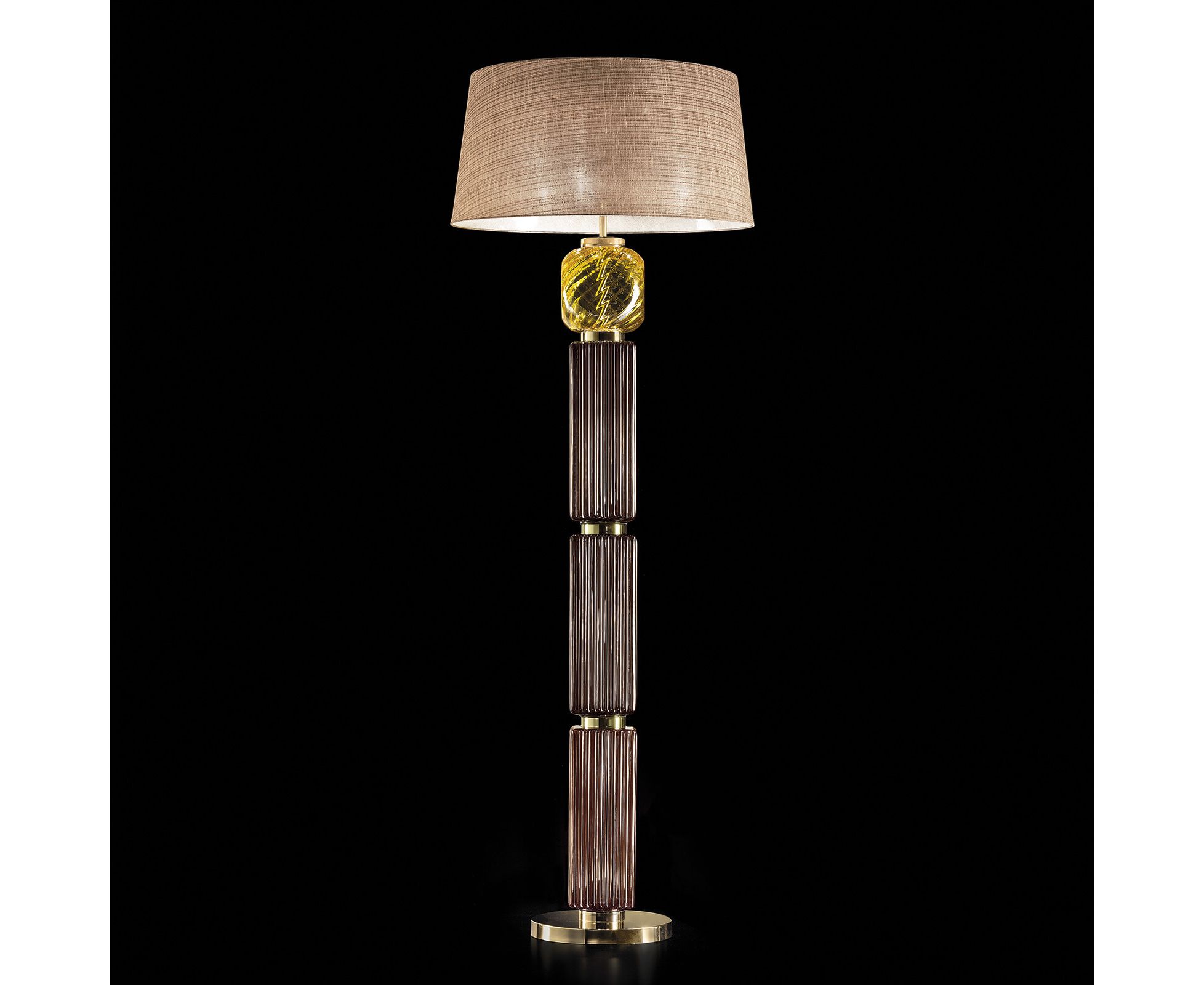 Торшер с металлической структурой, отделка из светлого золота, корпус из выдувного стекла и тканевый плафон Доступен в разных цветах. Классический каталог Opera.