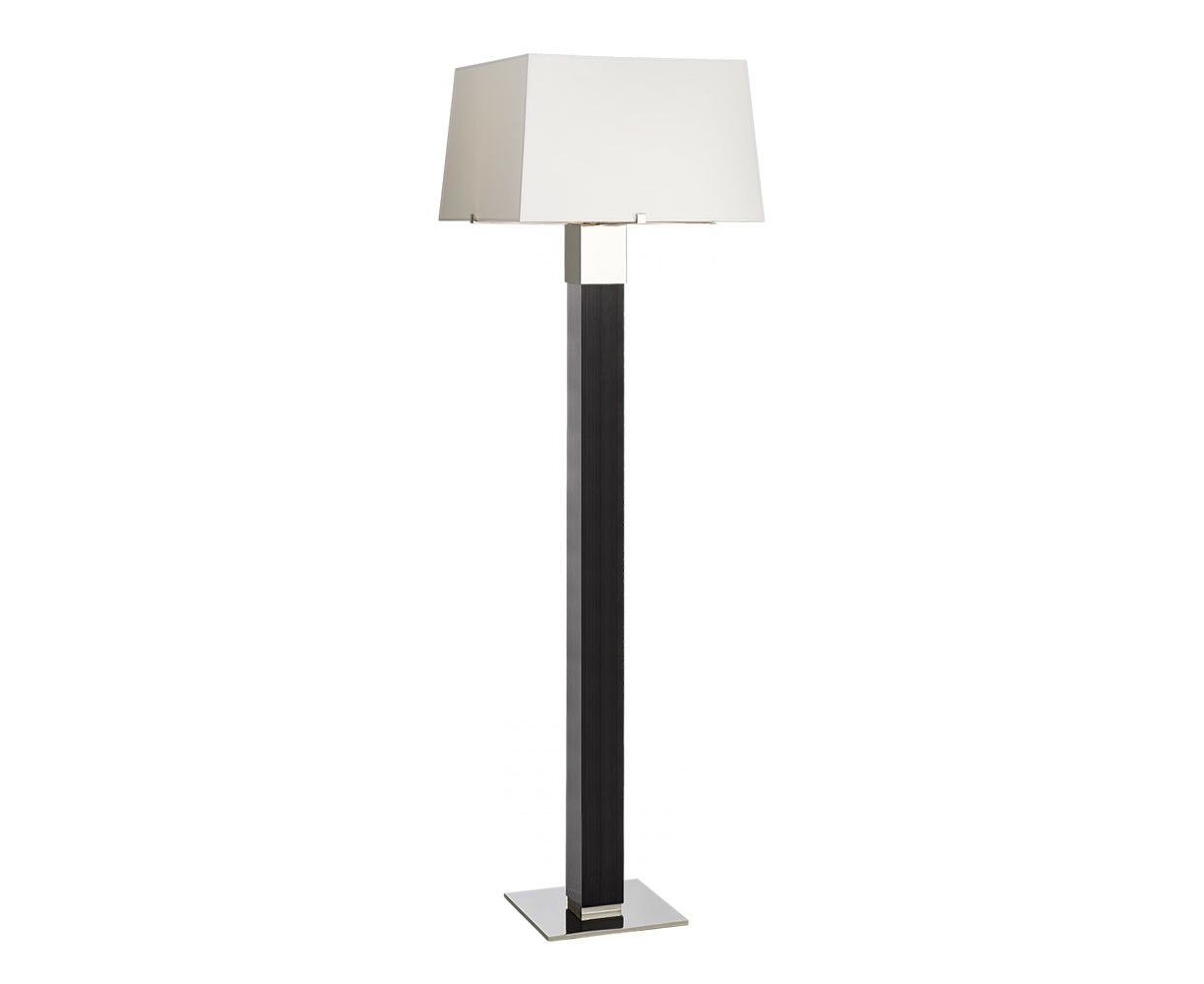 Торшер Hardy основан на сочетании материалов, сочетающих натуральное черное дерево с полированными металлическими акцентами. Геометрический абажур усиливает присущую светильнику современность.