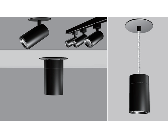 Множество вариантов установки: потолочное крепление, подвесное и на шинопровод. Этот светильник является хорошим выбором для замены существующих ламп освещения. Он также поставляется с различными углами распределения освещения 15 °, 24 °, 38 °, 60 ° на основе дополнительной световой линзы. Модели оснащены черным антибликовым кронштейном, обеспечивающим бесшумное и высококачественное освещение для различных сред.