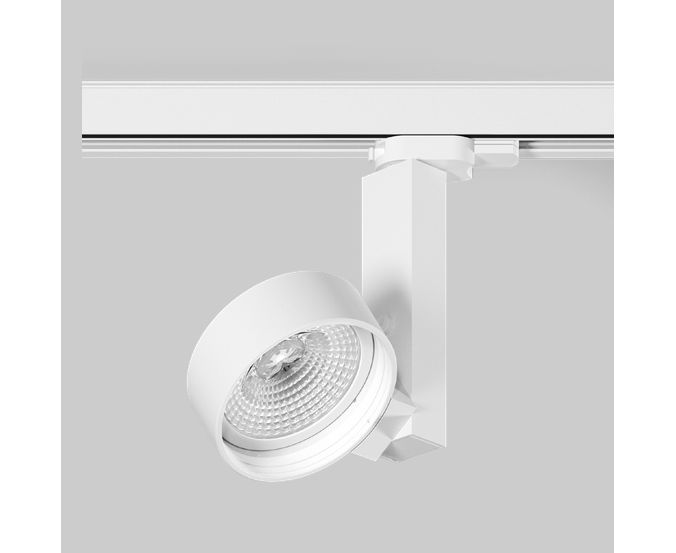 Рефлектор с токовой шиной из алюминия; рефлектор, поворот 355°; головка рефл., наклон на 85°; поверхность белая или черная с порошк. покрытием; конвертер смонтирован в корпусе светильника из алюминия; пассивное охлаждение СИД благодаря оптимизированной геометрии теплоотвода; с технологией COB (бескорпусный чип) для максимальной эффективности; без образования множественных теней; энергоэфф. светодиоды с высокой степенью цветопередачи; биннинг начальный ≤ 3 МакАдаму; поставляются с цветовой темпер. 3000 K; CRI ≥ 80; мин. 80% светового потока спустя 50000 ч эксплуатации; качественная один. линза; точная характеристика излучения с двумя разными углами излучения; степ. защ. IP 20; Защ. I; адаптер для монтажа без инструмента или перемещения на различных 3-фазных токовых шинах; на выбор без регулирования яркости освещения или с регулятором яркости по сигналу DALI.