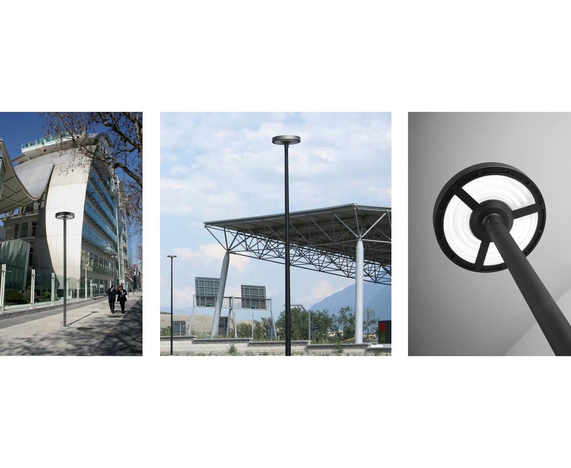 Тау дорожное освещение: новый фонарный столб для нового способа освещения. Последние люминесцентные лампы T5 имеют очень маленький диаметр (15 мм) и круглую форму, что делает их особенно компактными. Проект Тау был разработан, исходя из этих особенностей. Тонкий необходимый диск, который излучает мягкий и комфортный свет только вниз, таким образом, соблюдая правила освещения. Tau - это инновационное предложение, в котором широко используются современные требования к энергосбережению и совместимости с окружающей средой.