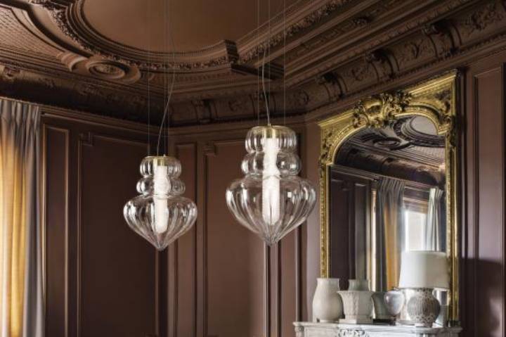 Vallonné и Vallonné Opale - это новые линии подвесных ламп из венецианского хрусталя, выдуваемых ртом и изготовленных вручную.