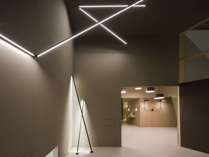 Для освещения дизайнеры выбрали коллекцию Sticks от Vibia. Разработанный Arik Levy, Sticks предлагает творческий инструментарий для интеграции света в пространство. Он сочетает в себе технологии, пространство и архитектуру с гладкими алюминиевыми стержнями, которые превращают линейный свет в плавающую скульптуру.