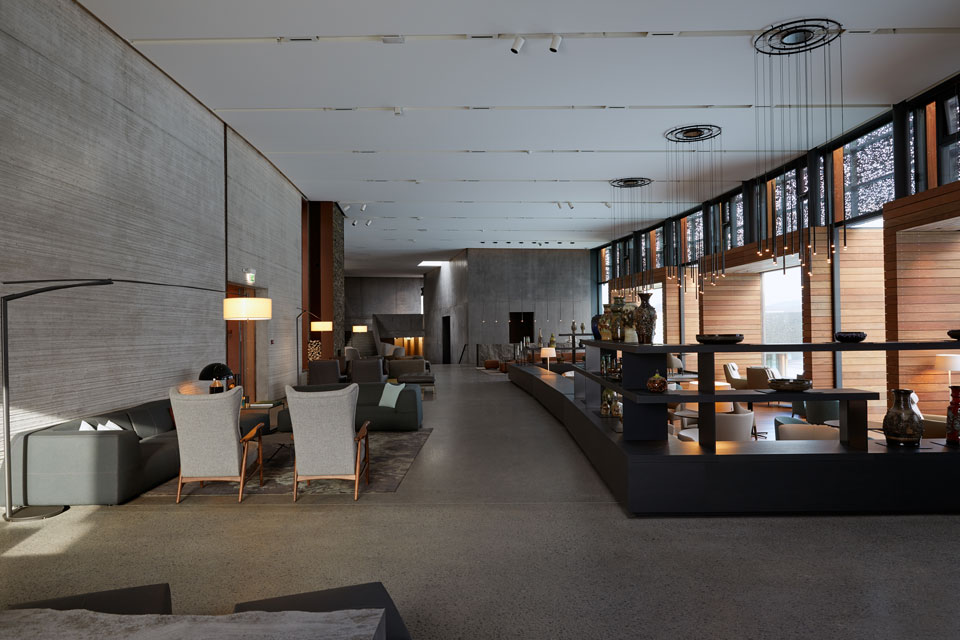 Retreat стирает границы между природой и искусственным миром, с внутренними стенами и крышами, образованными из лавы, и водами Голубой лагуны, протекающими по всему комплексу. Вдохновленные потрясающей обстановкой на острове на краю Полярного круга, дизайнеры стремились создать атмосферу утонченной роскоши, отражающей тональные цвета окружающей среды и простую географию.