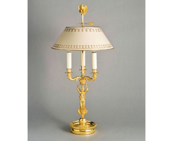 Классический светильник напоминающий канделябр с греческой богиней в основании. Основание - лакированное золото в 24 карата.
