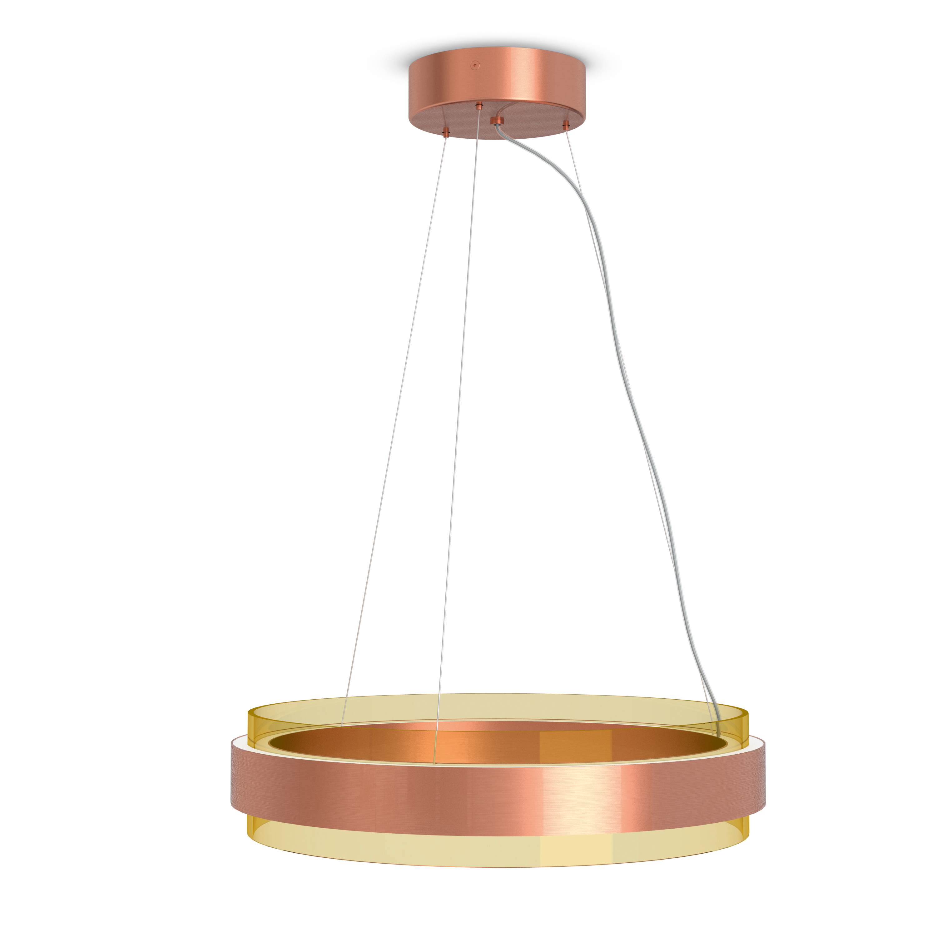 Элегантная игра геометрии и круглых соединений с сильным декоративным оттенком, которая украшает и освещает комнату с сильной, но сдержанной индивидуальностью. Светодиодный источник света очень эффективен и полностью скрыт в структуре. Прямое освещение определяет область света внизу, усиливая естественную красоту дымчатых, янтарных и прозрачных тонов, украшенных отделкой из меди и матового золота.