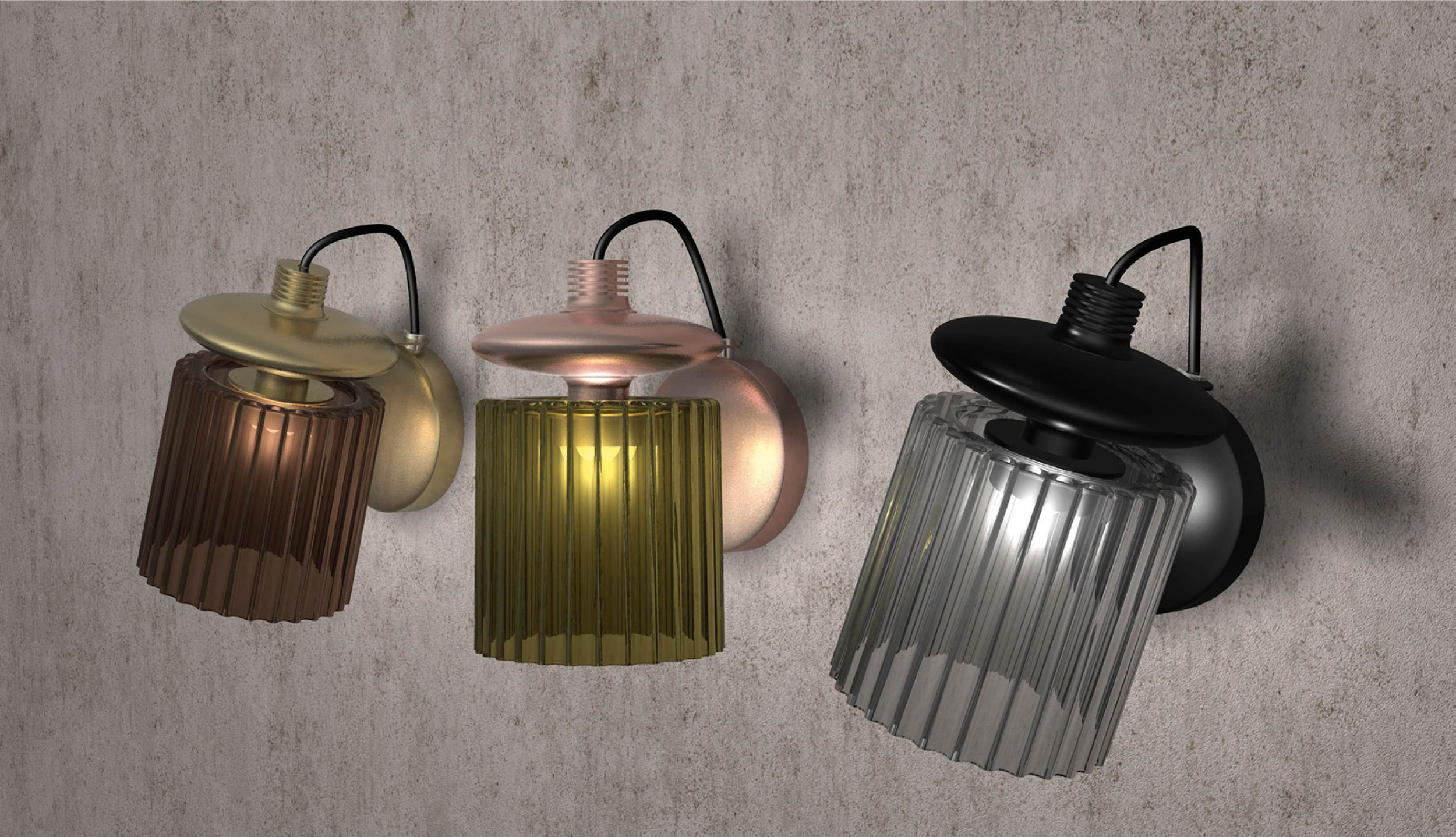 В коллекцию входят настольный, настенный и подвесной светильники.