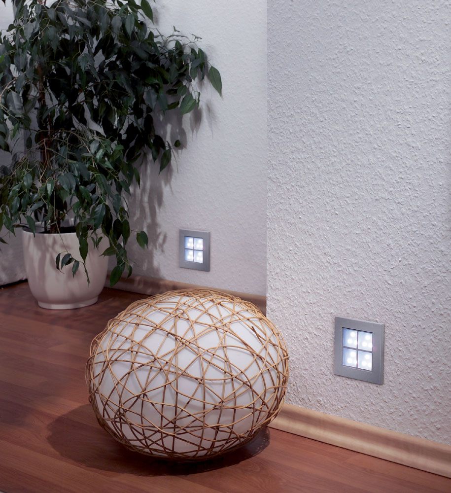 Встраиваемые в стену светильники в большинстве случаев применяются для декоративной подсветки каких-либо элементов или частей помещения. Данные осветительные приборы монтируются в стену так, чтобы они светили вверх и/или вниз, не слепя при этом.