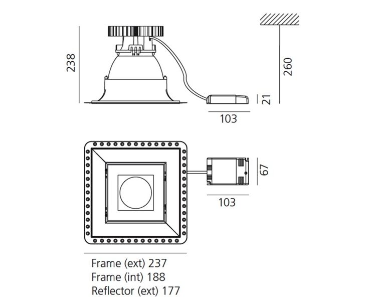 Встраиваемый в потолок светильник Artemide Architectural Luceri Kadro LED trimless Rounded edge trim