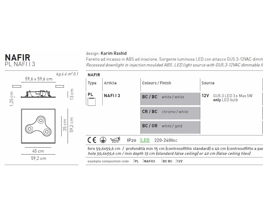 Встраиваемый в потолок светильник Axo Light Nafir PL NAFI I 3