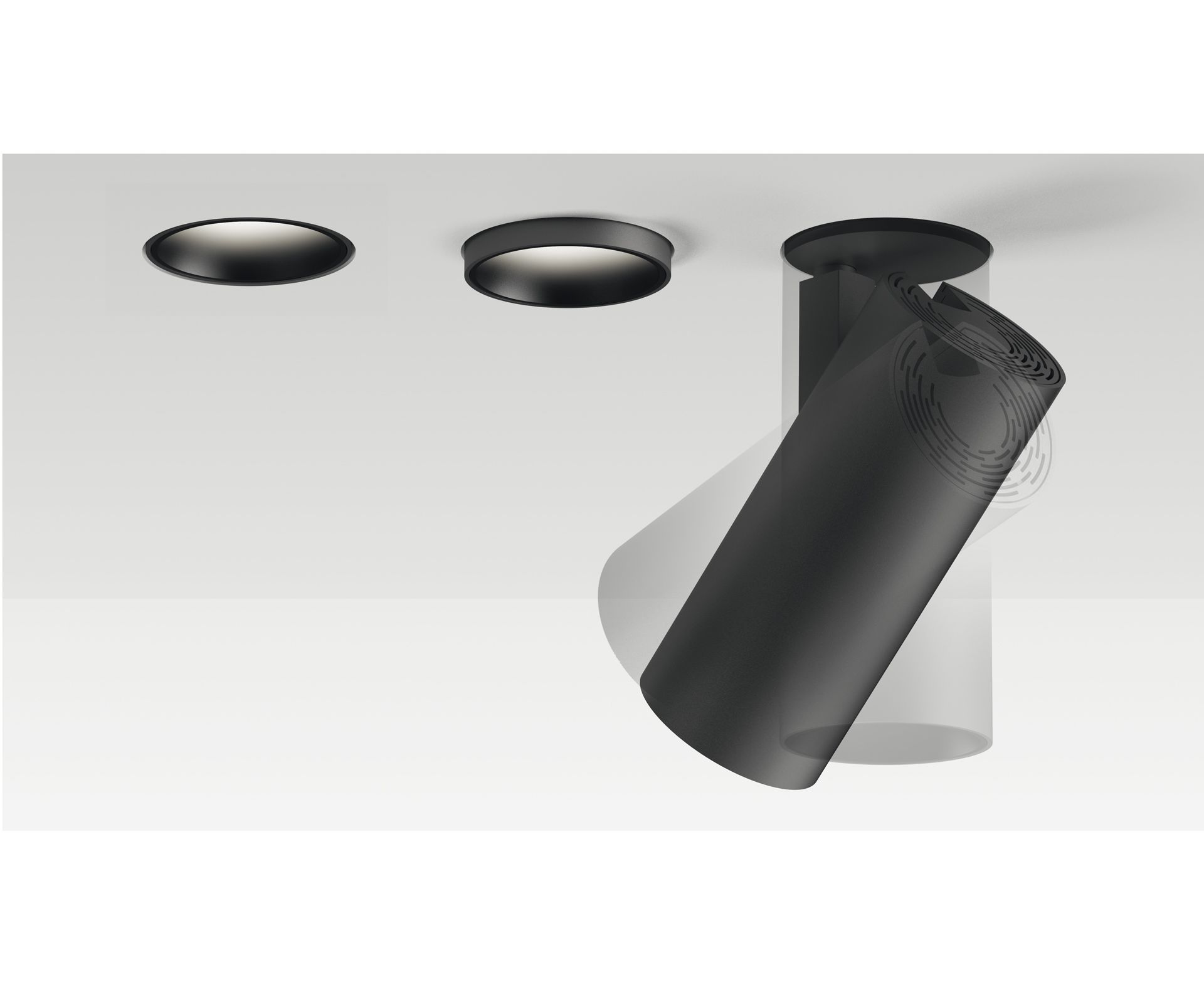 Два размера с тремя различными углами луча каждый (spot, flood, wide flood), полученные с помощью рефракционных или гибридных оптических устройств. Соединение позволяет поворачивать прожектор на 360° и наклонять на 90 ° для максимальной свободы регулировки света. Vector 40 и 55 доступны trim или trimless.