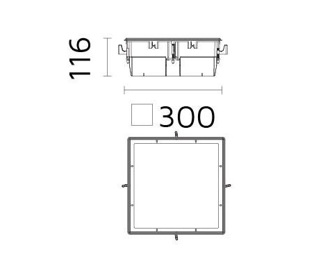 Доступен в 2 версиях Trim или Trimless, его световая головка доступна в 3 разных размерах 630 мм, 400 мм и 300 мм, с IP66, простая установка через зажимные крылья.
