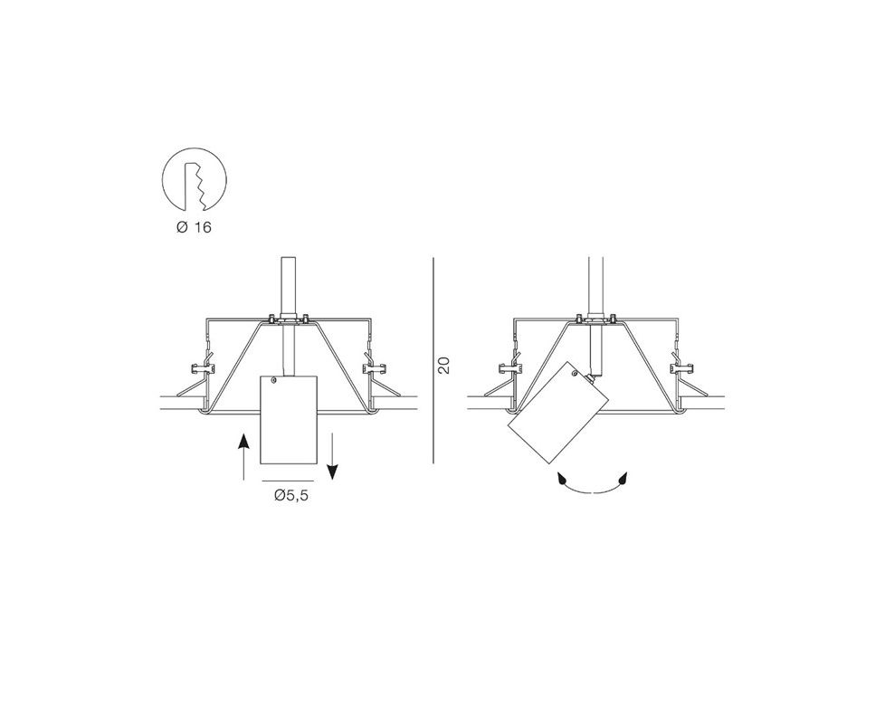 Система Riccio также включает выдвижной регулируемый прожектор, который можно ориентировать с помощью телескопической опоры. Окрашенная алюминиевая конструкция. Светодиодный источник света с разным световым лучом. Дистанционное электропитание в подвесном потолке.