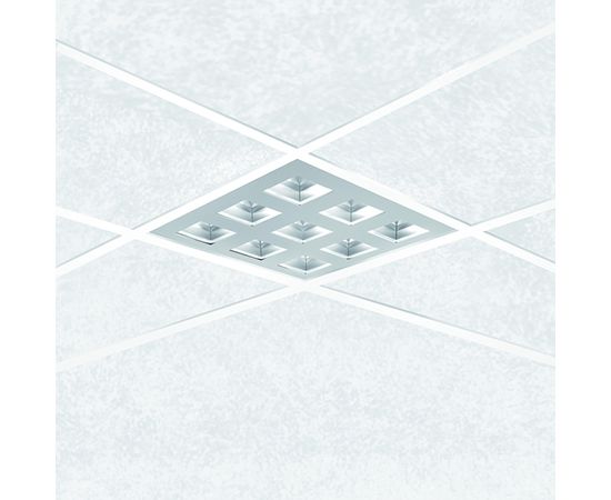 Встроенный светодиодный светильник с металлической структурой крепления для установки в гипсокартонном потолке. Укомплектован симметричным отражателем и ЭПРА.